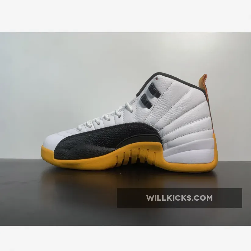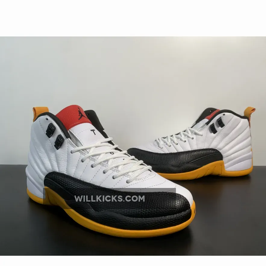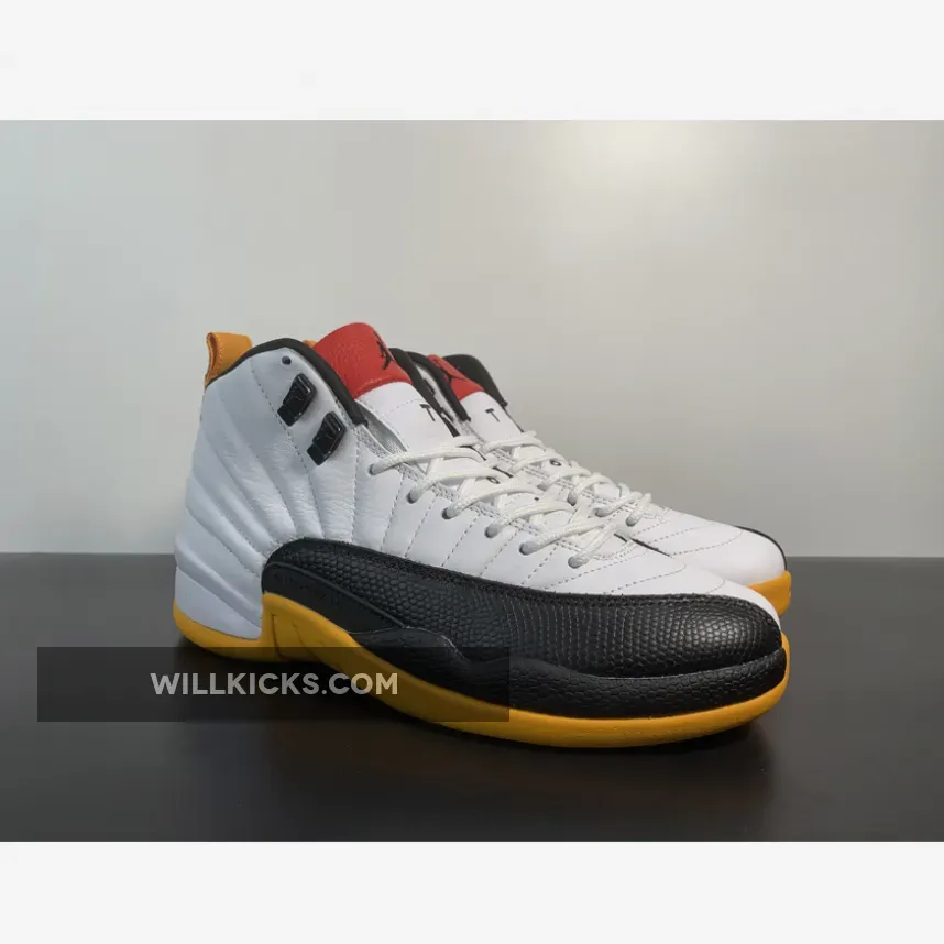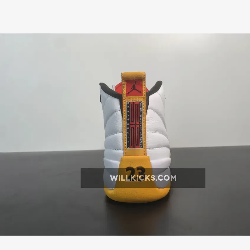 The Air Jordan 12 Retro ’25 Years in China’ celebrates the silver anniversary of Jordan Brand’s presence in the Chinese market. Inspired by colors from an original Tinker Hatfield ‘Taxi’ sketch (that can be found on the sockliner), the championship silhouette sports a white leather upper with lizard-textured mudguards in a contrasting black finish. Jumpman branding appears on the crimson tongue and Taxi yellow heel tab, featuring a notation on the right shoe that reads ‘Celebrating 25 Years of Jordan in China.’ Underfoot, the Taxi-hued outsole is equipped with an exposed carbon fiber shank plate and red herringbone traction pods for optimal grip.
