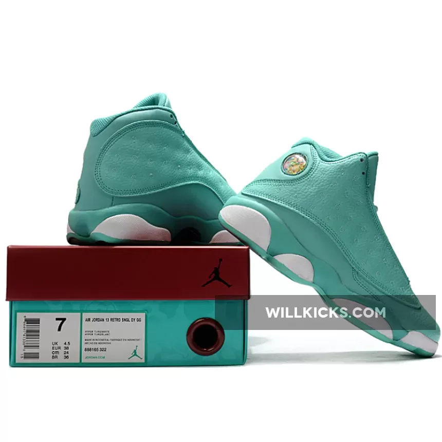 “I’m totally stoked with my Air Jordan 13 GS ‘What Is Love’ Green White kicks! The design is so unique and the Tiffany colorway is gorgeous. Shipping was super fast, arrived within 3 days of ordering. Quality is top-notch, feels comfy on feet. Definitely recommend for any sneakerheads out there” – 5/5 stars