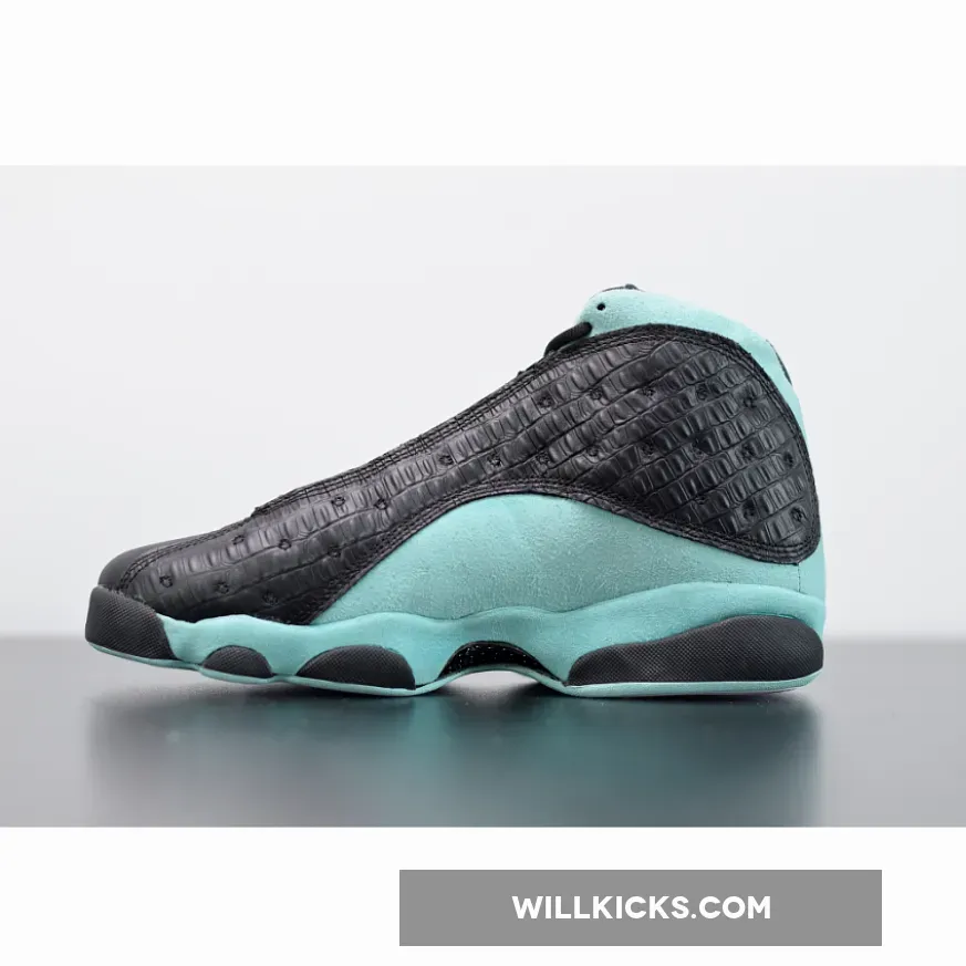 The Air Jordan 13 is back on its Retro wave, bringing with it some luxurious elements via a reptile-textured leather upper, metallic silver embellishments on the “cat’s eye” on the heel and tongue logo, and a breathtaking tint of island green that exudes the aura of precious stones. Classic tumbled leather toeboxes and suede panels maintain the original nature of Tinker Hatfield’s design from the 1997-1998 NBA season