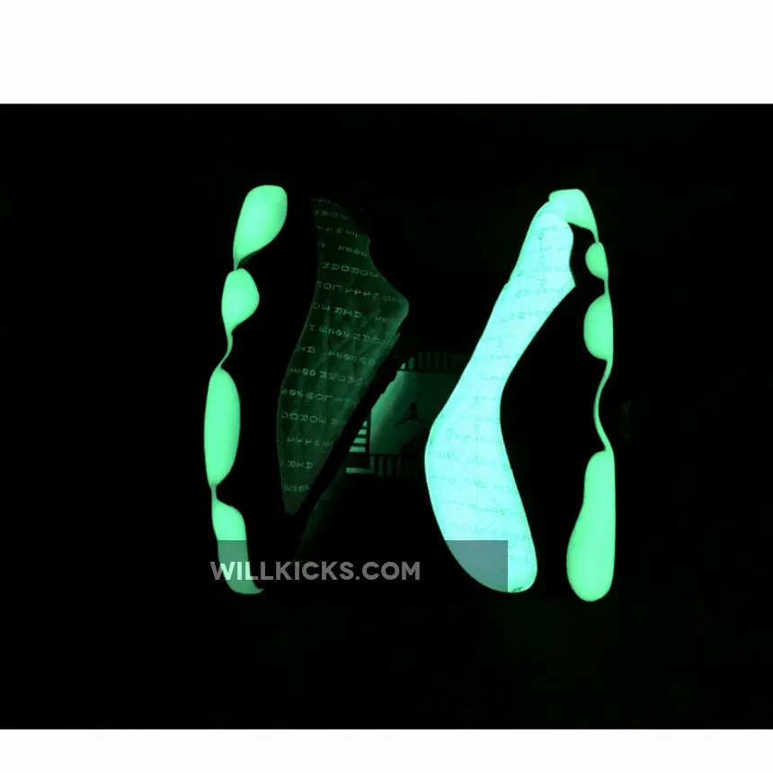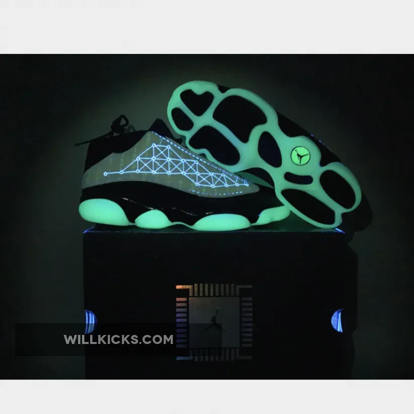 Who says only couples get a special day to celebrate? Showcase your self-love with the Air Jordan 13 Low Singles Day. This pair boasts a sleek black pebbled leather base that matches the throat and ankle. It is topped with a tumbled mint green leather overlay in the side panel that features a constellation-like geometric pattern stitched onto upper. These shoes’ true beauty shines when the light goes out as glow-in-the-dark text that says “1111 Low” and “Air Jordan 2021” is revealed. Finishing the futuristic look is the glow-in-the-dark chunky outsole.