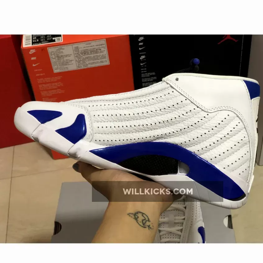“Got my new Air Jordan 14 Hyper Royal and I’m stoked! 👟 The white leather upper is sleek and comfy. Customer service at the retailer was top-notch 📞👨💼, helped me with sizing and even threw in a free pair of socks 🧦. Highly recommend for sneakerheads and casuals alike ⭐️⭐️⭐️”