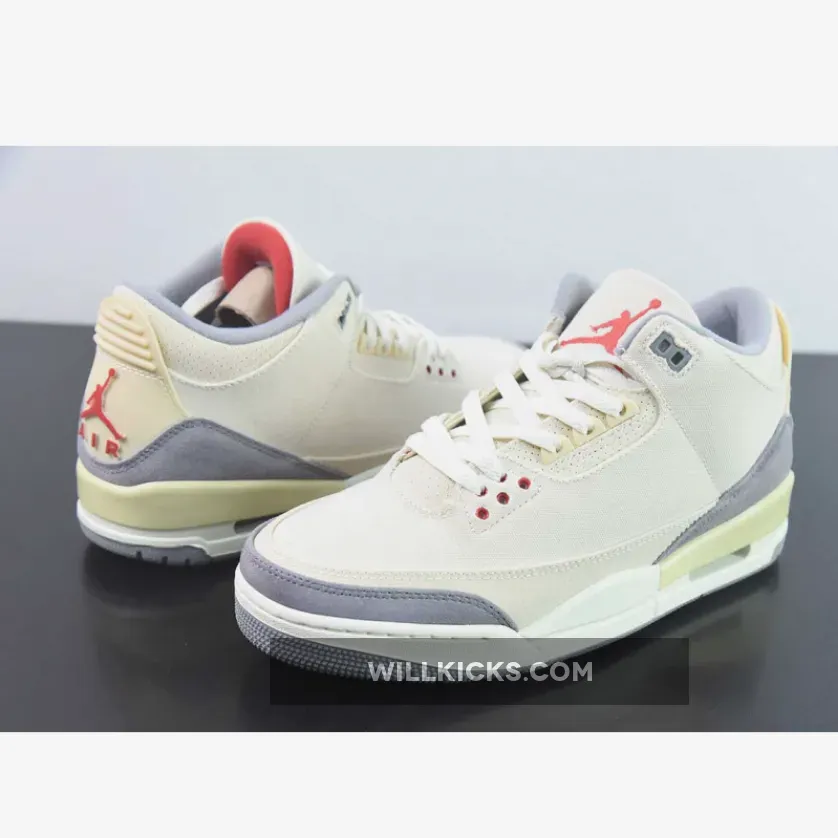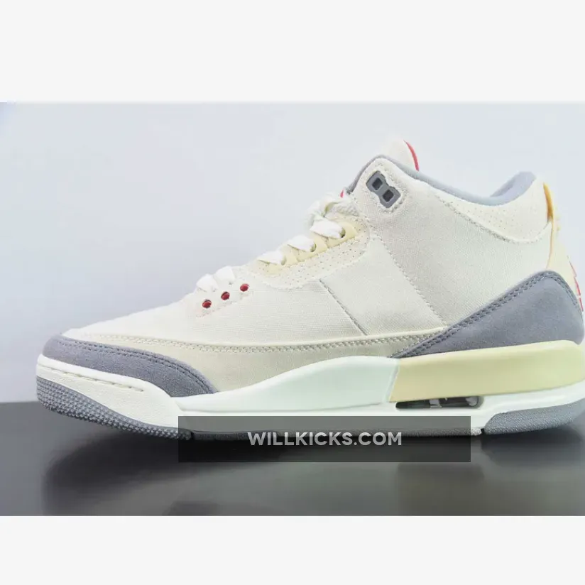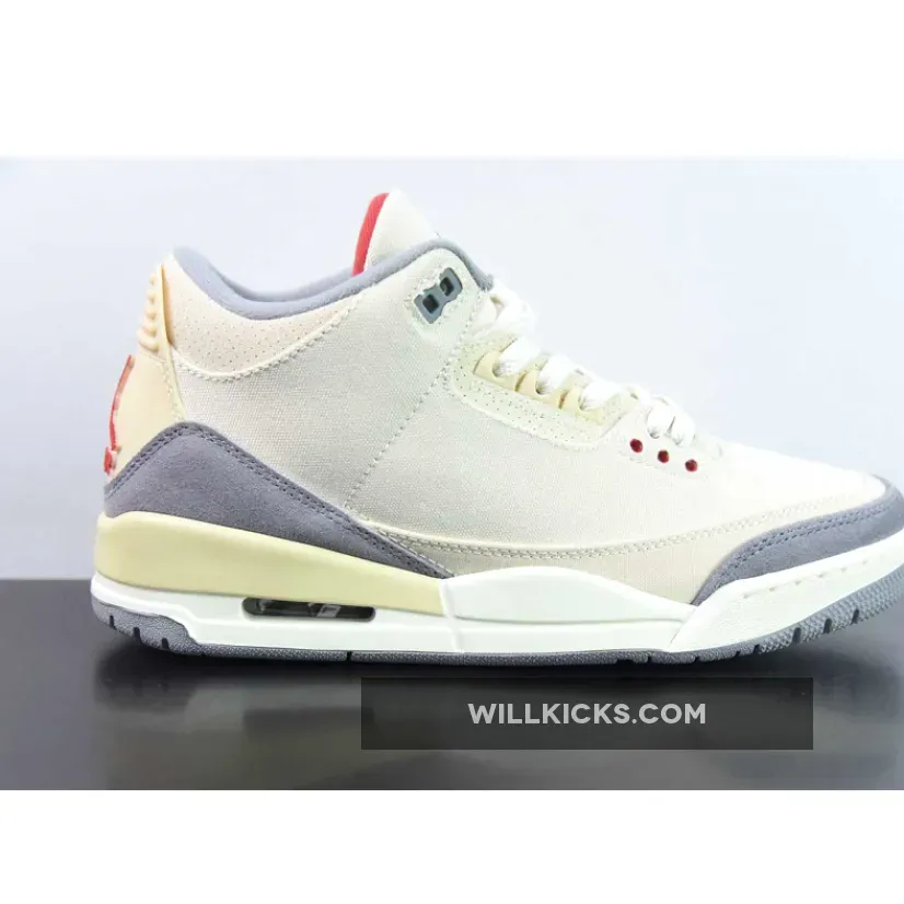Loving the new Air Jordan 3 Muslin! ? Canvas upper is super comfy and stylish, love the neutral tones with pops of red ? Grey suede overlays add a touch of elegance. Great job Nike! #AirJordan #SneakerLove ?