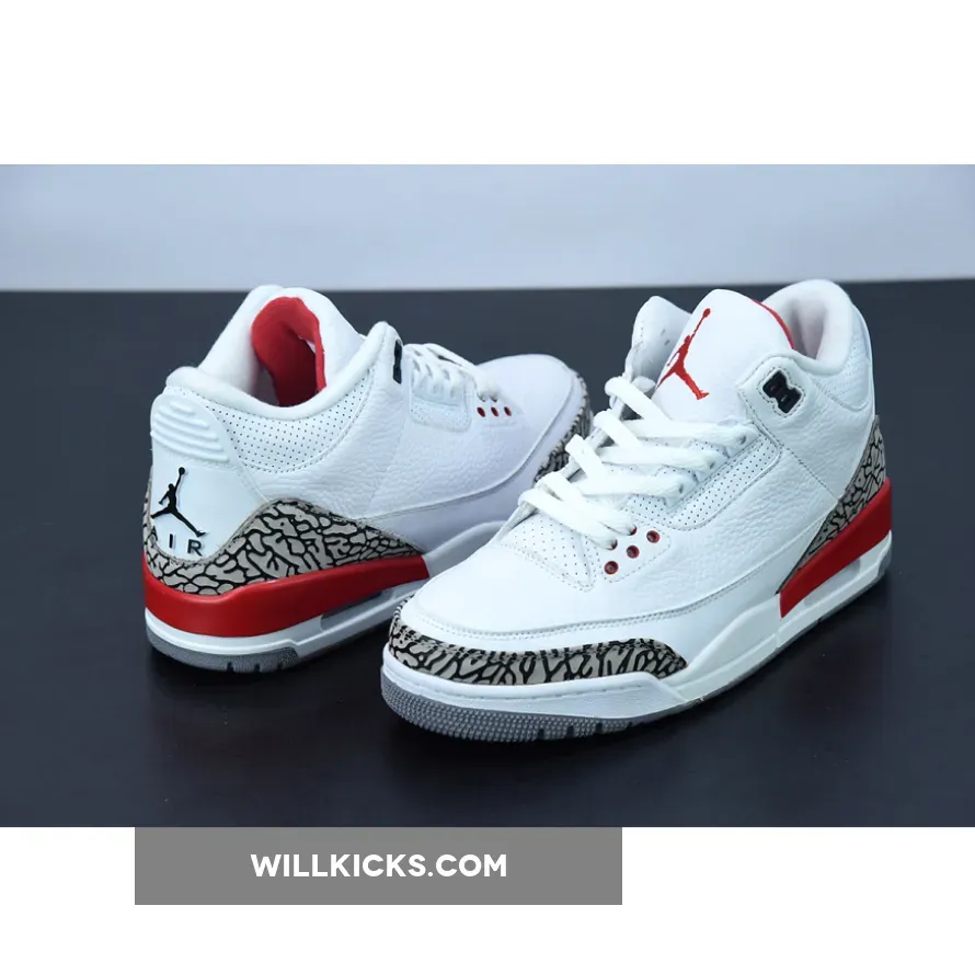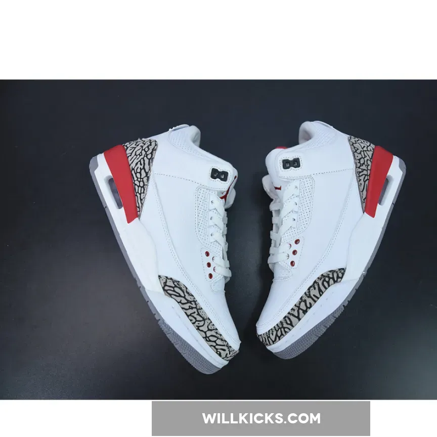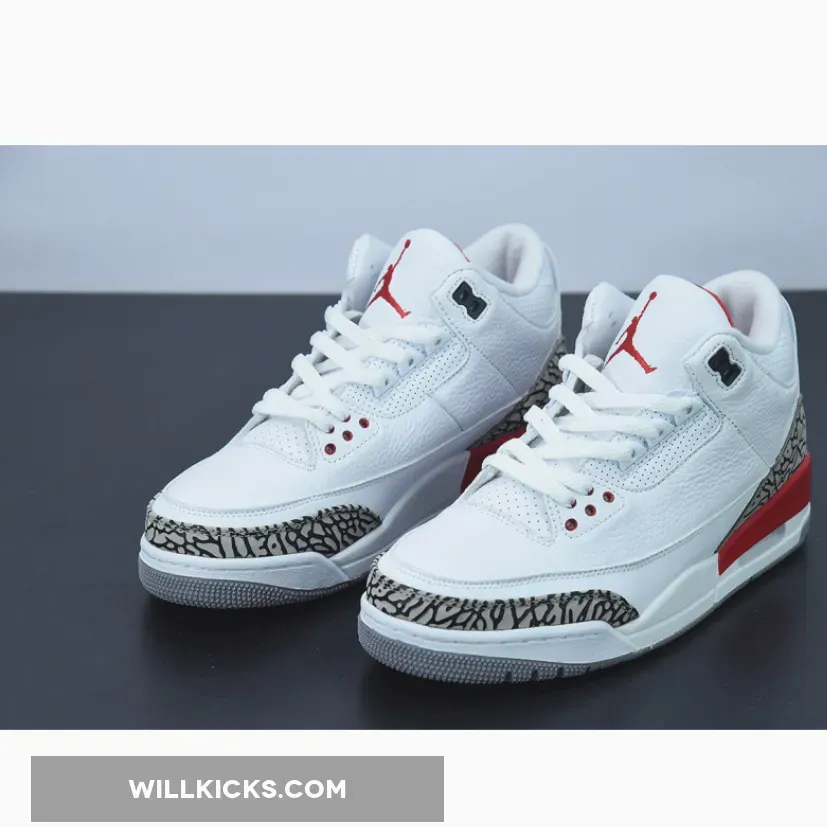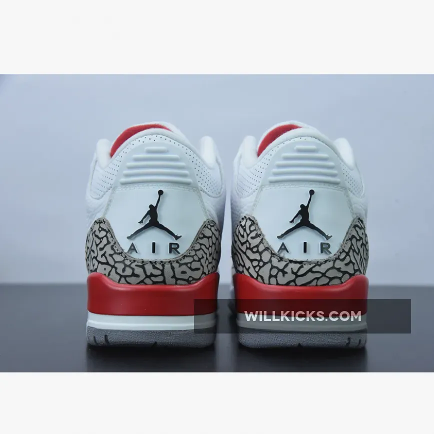 Phenomenal design on the Air Jordan 3 Katrina! ?? The white leather with Cement Grey, Black, and Fire Red accents is simply stunning. Love the elephant print on the toe box and the visible Air Unit. Highly recommend this classic sneaker for any collection! ? #AirJordan #SneakerGoals #MustHave #KatrinaEdition