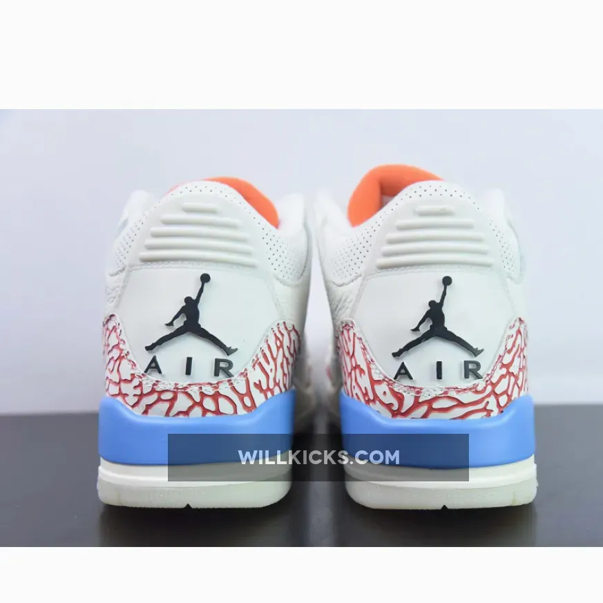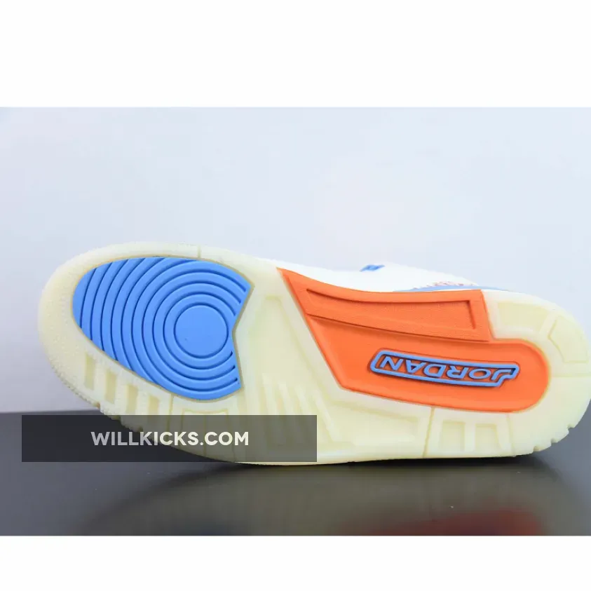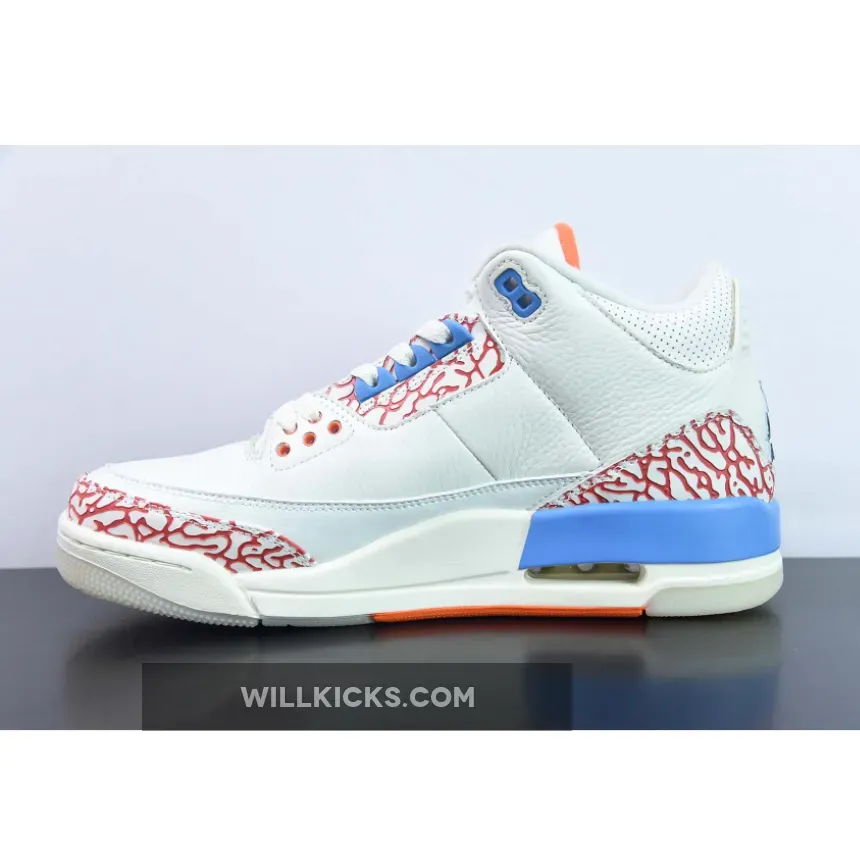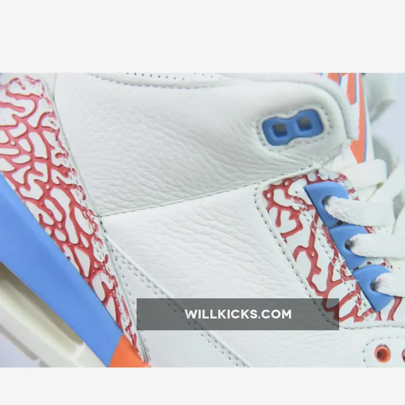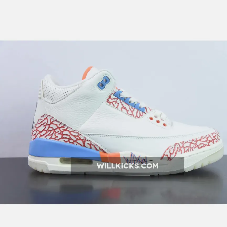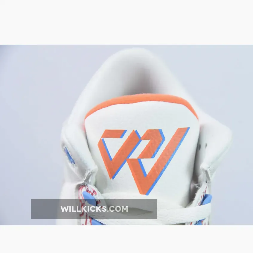 This custom PE uses the colors of the Oklahoma City Thunder as this was Westbrook’s team at the time. The upper is crafted with white tumbled leather and features perforations on the collar and tongue. The sneaker has smooth leather mudguards that showcase Westbrook’s historic stats, meanwhile the lateral midsole features his signature motto “Why Not,” with accents in orange and blue on the elephant print overlays. The tongue features Westbrook’s personal logo, while a black Jumpman logo adorns the heel and insole. A translucent outsole completes the sneaker.