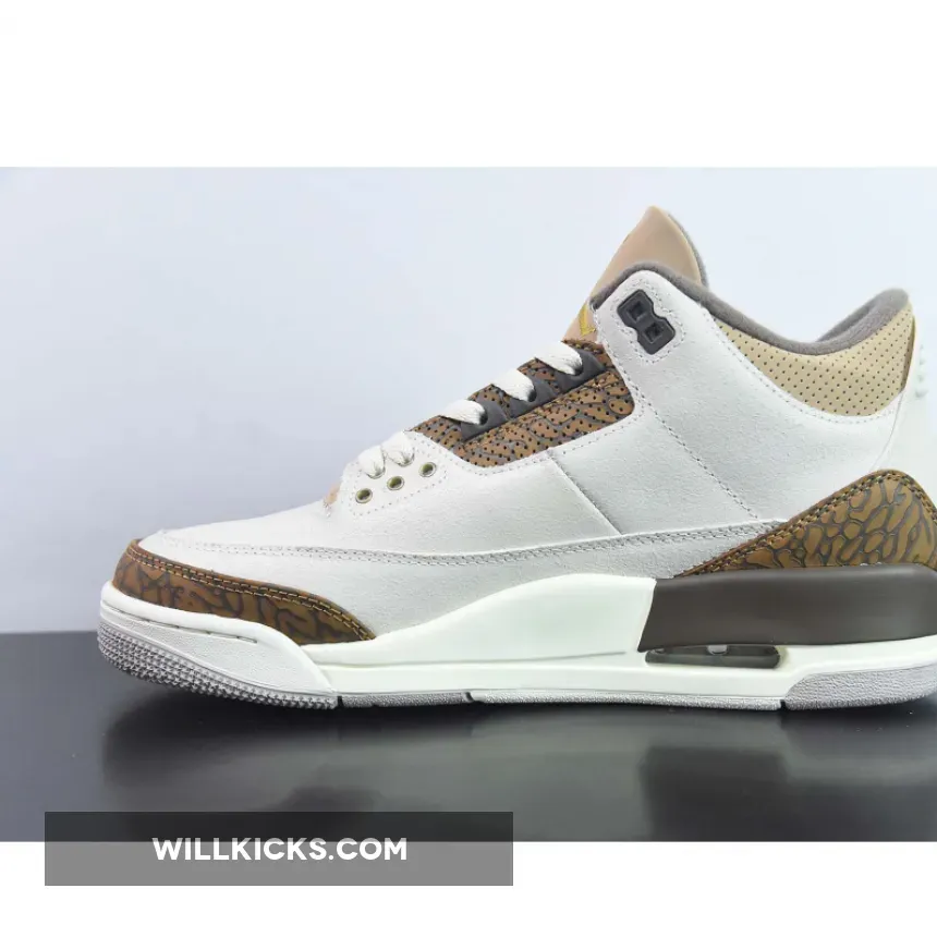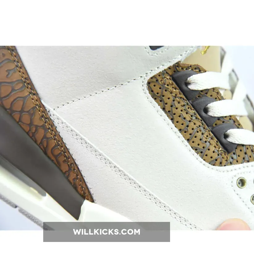 This Air Jordan 3 comes Clad with a cream Light Orewood Brown upper, the pair layers on coffee hues throughout, with mocha-colored collars, chocolate-brown liners and midsole detail, and mid-range browns across the silhouette’s signature elephant print