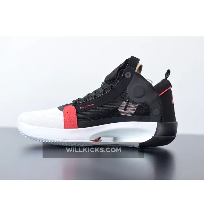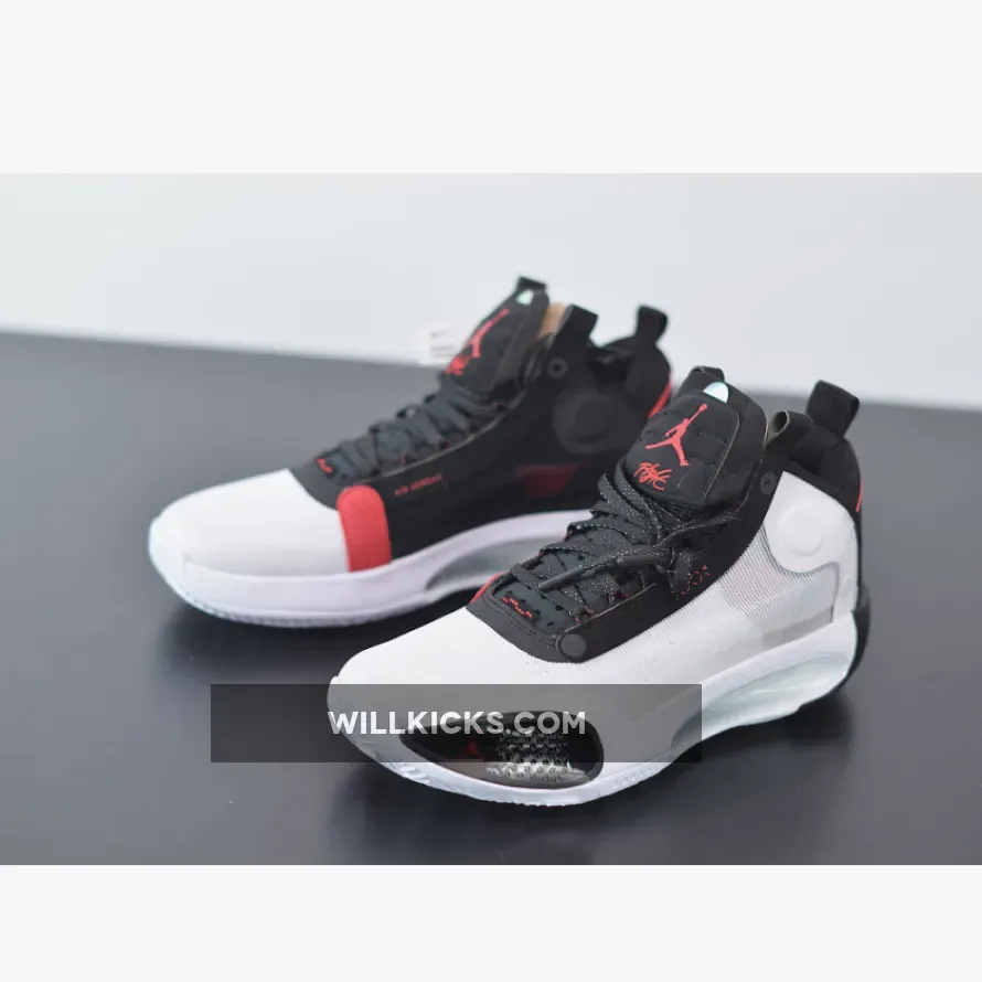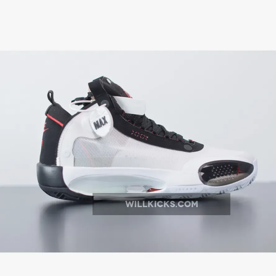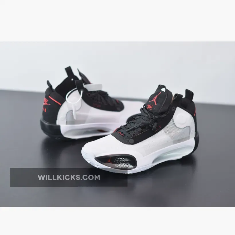 One of those is this upcoming offering that sports the popular “Bred” color blocking. This Air Jordan XXXIV features a White and Black upper paired with Red contrasting accents including “Nike Air” branded on the heels.