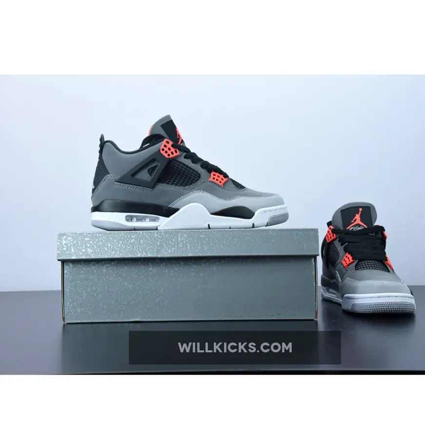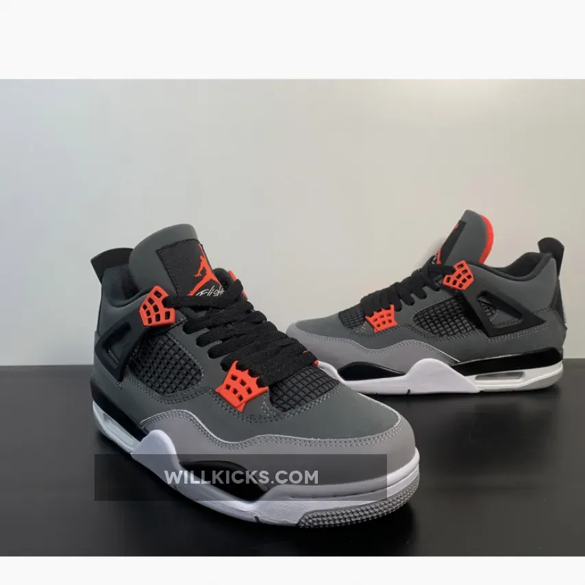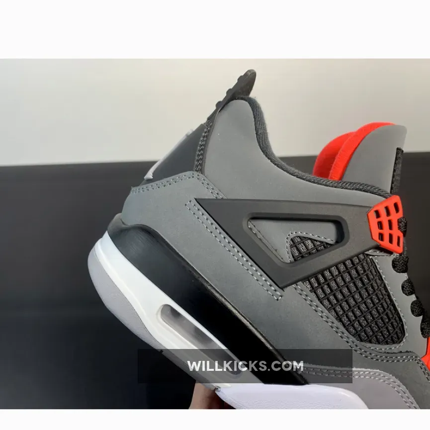 Bring some spice to your style with the Air Jordan 4 Infrared. Starting with an understated construction featuring a dark grey upper and overlapping light grey nubuck mudguard, this Air Jordan 4 rendition is complemented by breathable black mesh side panels and laces. Rounding off the Air Jordan 4 Infrared is an understated white and grey outsole.