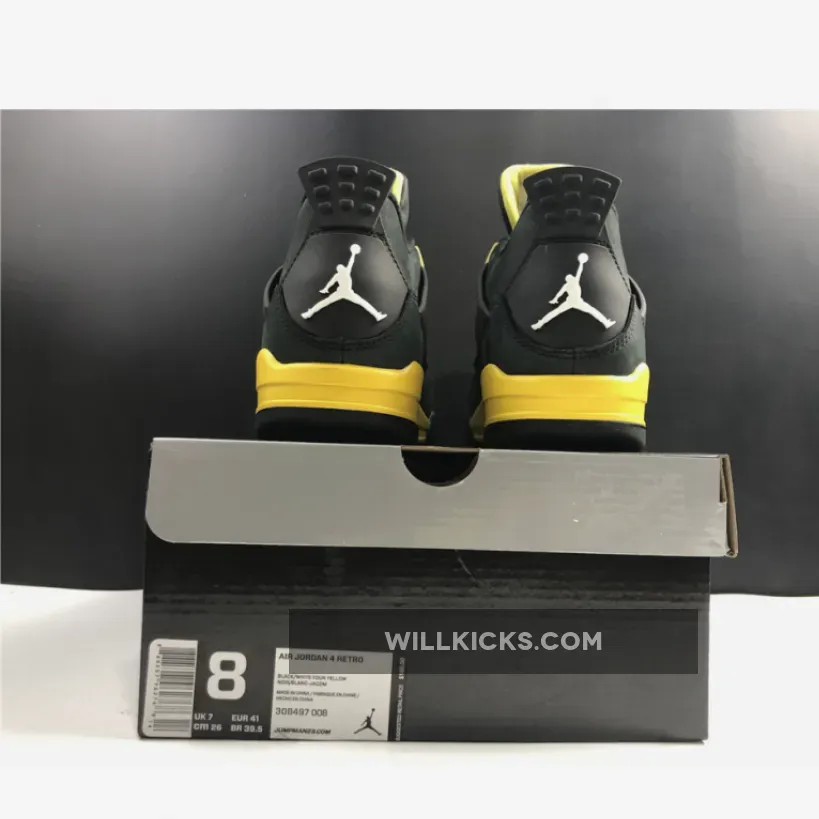 The Air Jordan 4 Retro ‘Thunder’ is ?! Love the premium suede upper and vibrant Tour Yellow accents. Super comfy and stylish ?. Highly recommend for any Jordan fan! #AJ4Thunder #SneakerGoals ?✨