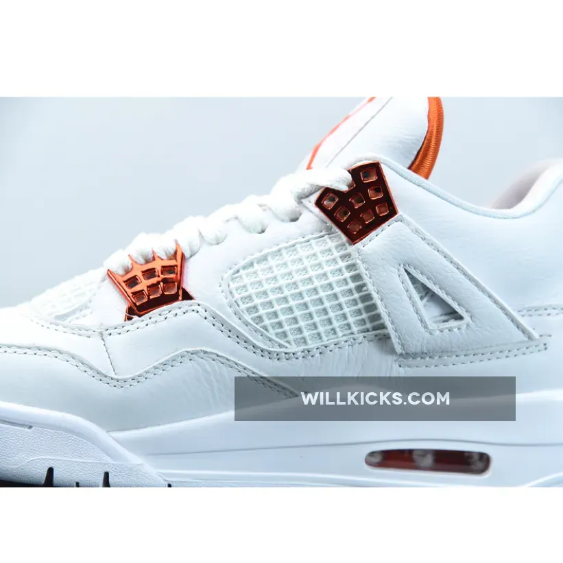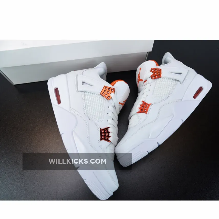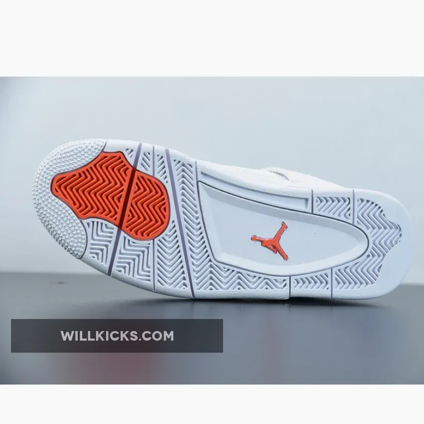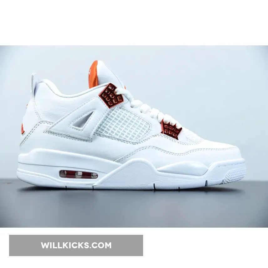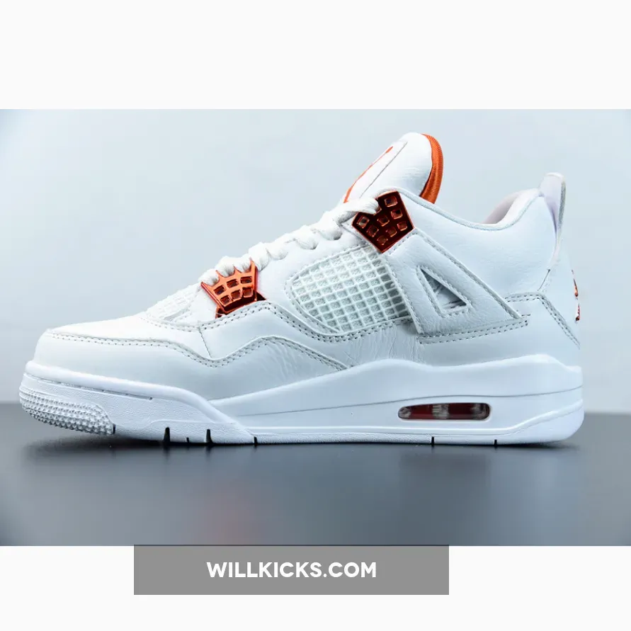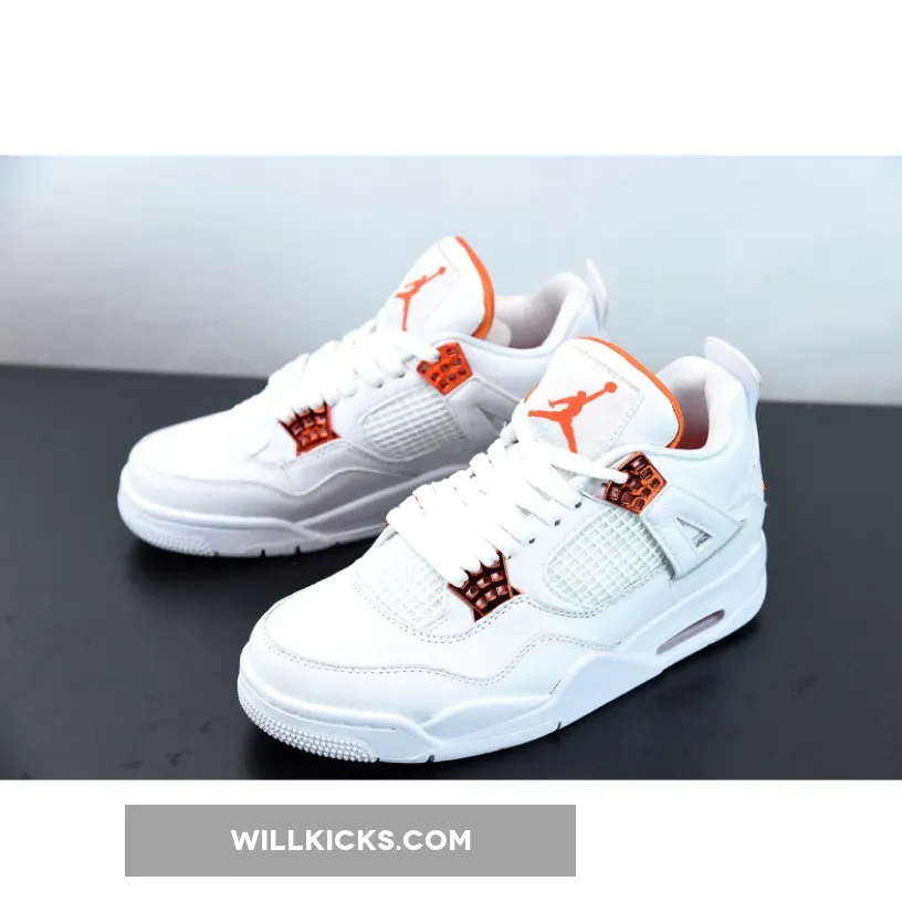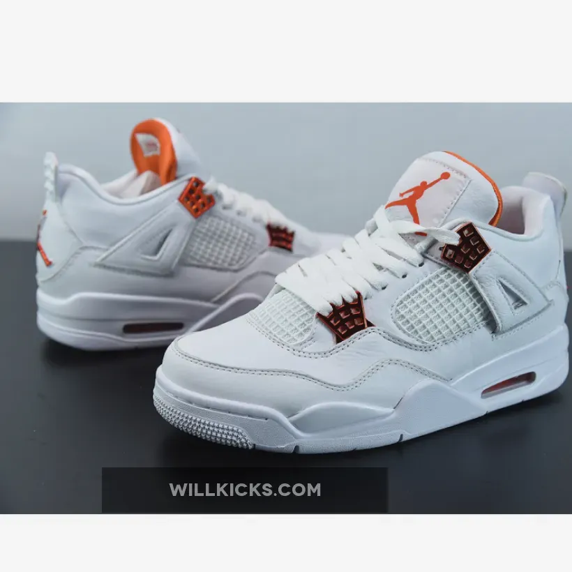 “I’m thoroughly impressed with my Air Jordan 4 Retro ‘Metallic Orange’! ? The white leather upper is clean and classic, while the metallic orange accents add a pop of color. ? The tonal netting on the mid-panel and throat adds texture without overwhelming the design. ? Overall, it’s a stylish and comfortable addition to my sneaker game. 4.5/5 ?”