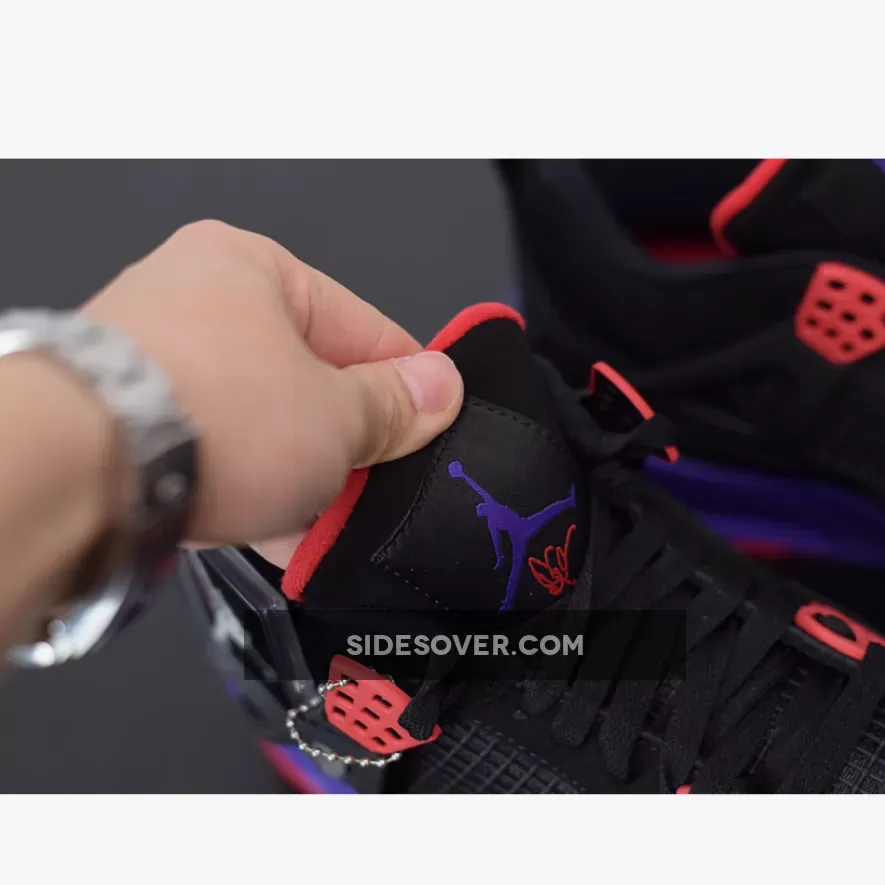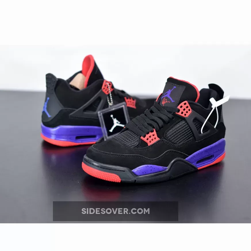“I’m genuinely impressed with my new Air Jordan 4 Raptors 👟! The black nubuck upper is sleek & sophisticated, while the purple & red accents add a pop of color 🎨. Comfortable fit, too 💪. Highly recommend for sneakerheads & casual wear alike!”