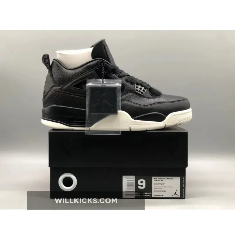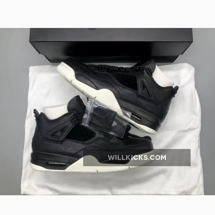 This Premium edition of the Air Jordan 4 is built with similar detailing as the Pinnacle releases with a Black premium tumbled leather construction that includes faux pony hair on the tongue, exotic textured skin embossing on the collar, waxed laces, quilted insoles and premium detailing throughout.