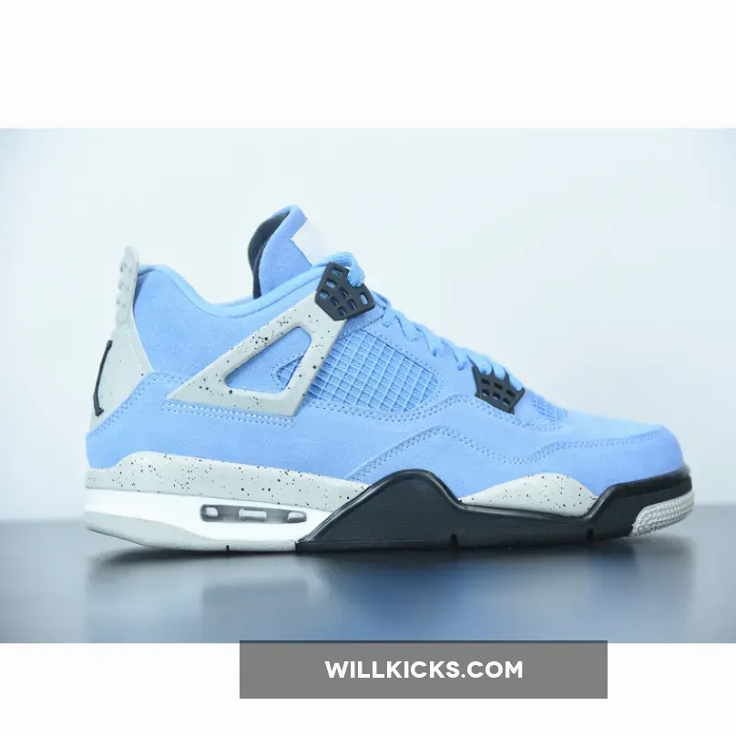 Quality suede & classic colorway ?. Perfect for any sneakerhead! ? #AirJordan4 #UniversityBlue ?.