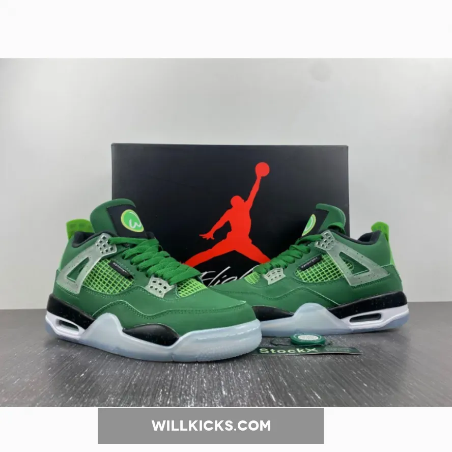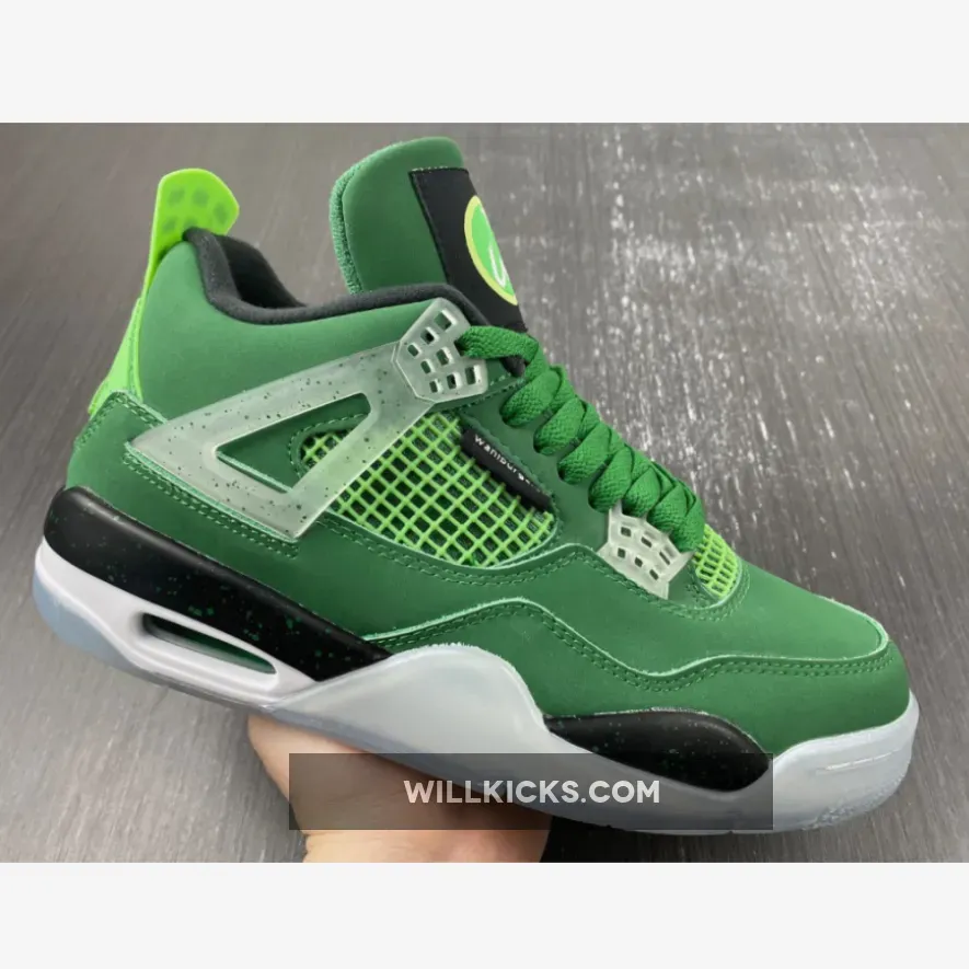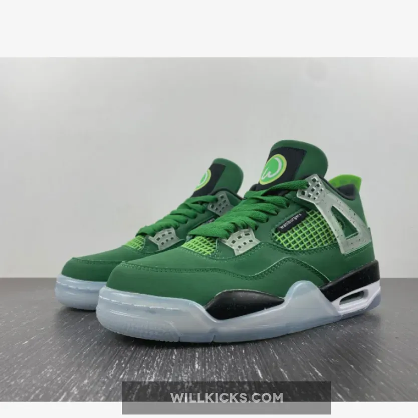 This celebrity duo has led to a number of Wahlberg-inspired Jordan PEs stemming from the family’s Wahlburgers franchise as well as the actor’s participation in the Transformers film series. Last year, Wahlburgers received its own trio of Jordan Formula 23 trainers, and now – in advance of its 30th anniversary celebration – the Boston-native took to IG to flaunt a pair of green and black Jordan 4s. Equipped with the burger joints signature “W” logo on its tongue, other details include an array of green shades, translucent eyelets and a matching outsole, and an attractive paint splatter print on its black midsole. A
