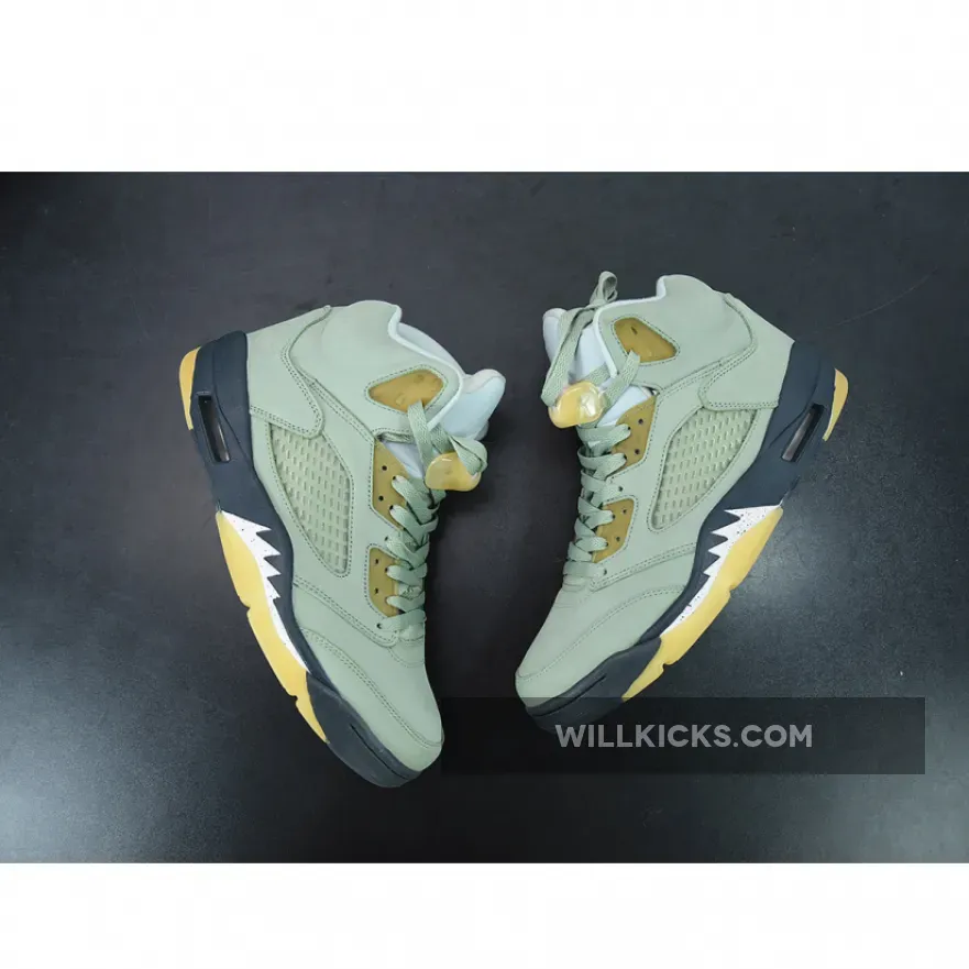 In search of a lucky charm? Maybe wearing the Air Jordan 5 Jade Horizon will do the trick. Sporting a colourway inspired by the green-coloured mineral believed to bring good fortune, this Air Jordan 5 is fully outfitted in pastel green leather with the exception of the breathable mesh side panels and retro-looking yellowed eye stays. Complementing the upper’s cool green tone are grey tongues and laces.
