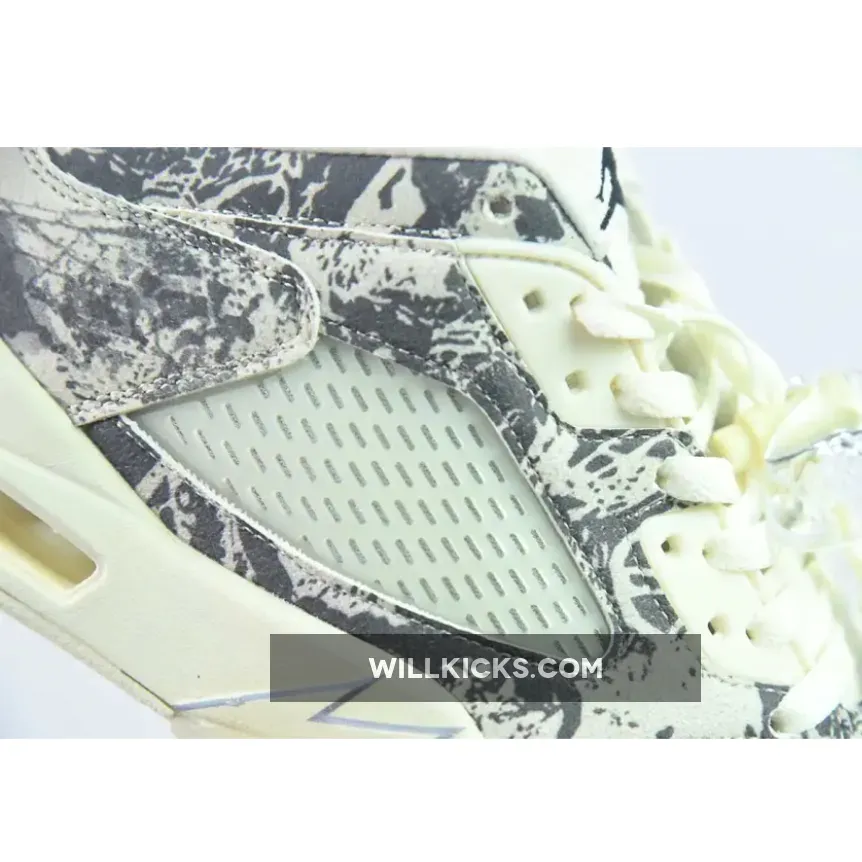 Jumpman branding is seen on the tongue and heel with the quarter panel netting seen in a translucent cream as well. Cream is seen again on the midsole with the P-51 Mustang-inspired teeth seen outlined in silver and a visible Air unit in the heel.