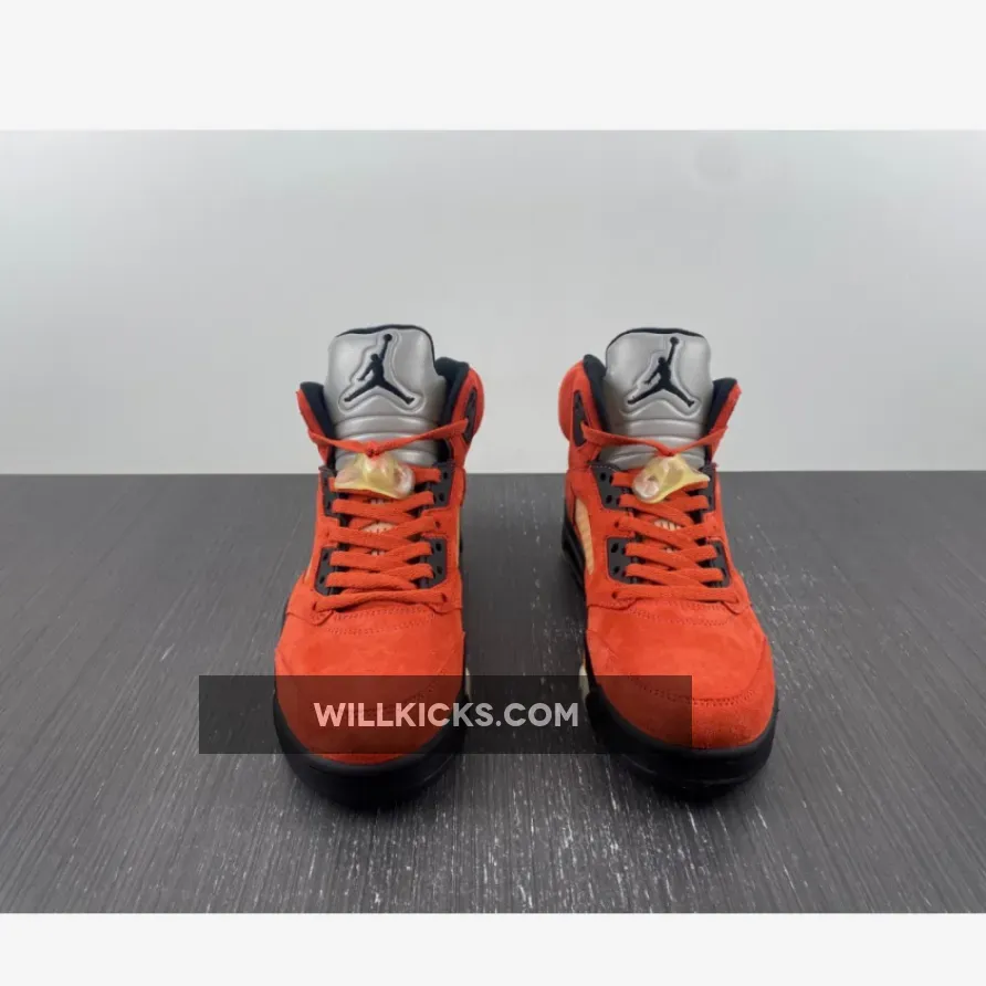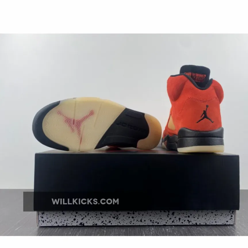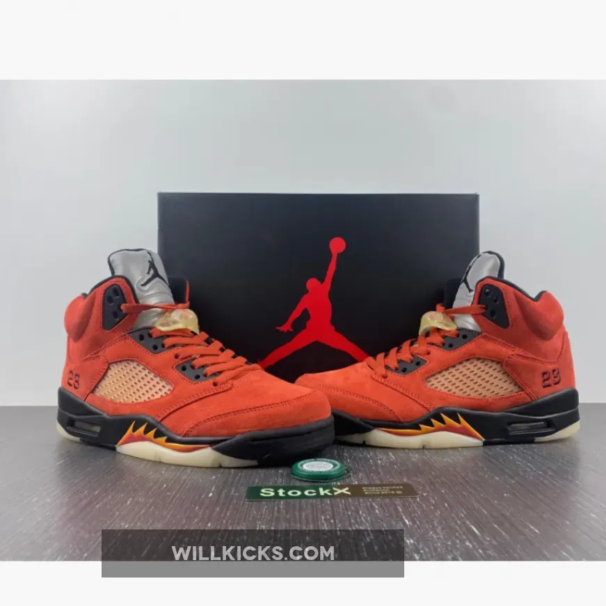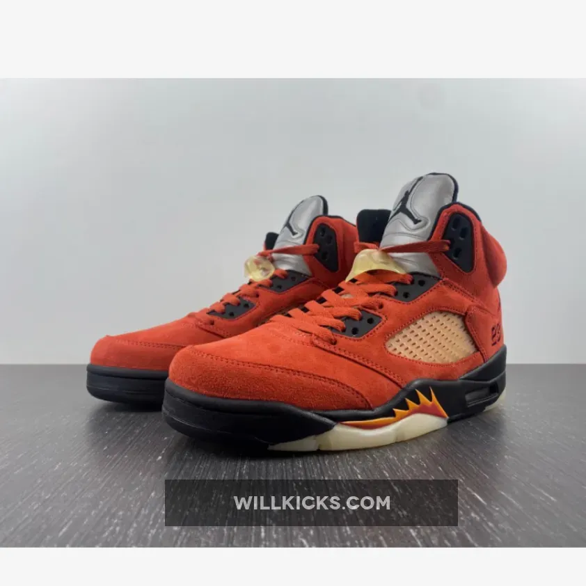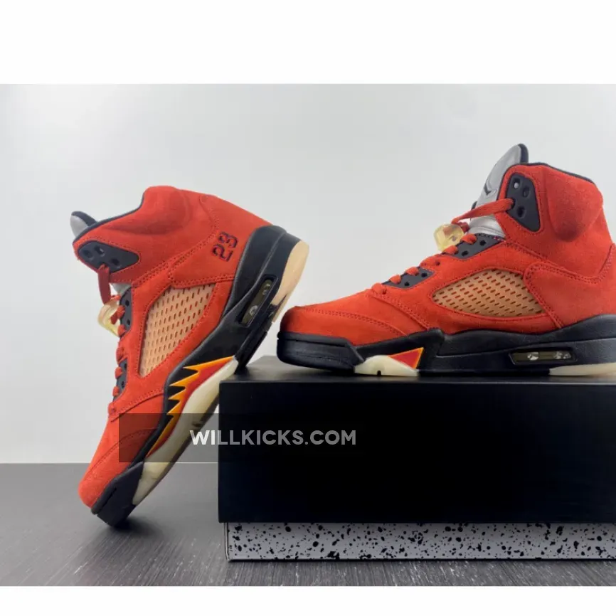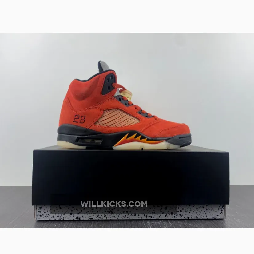 On its 30th anniversary, the Air Jordan 5 is releasing a fiery new iteration that takes inspiration from both Spike Lee’s Mars Blackmon and the planet, Mars – the Women’s Air Jordan 5 “Dunk on Mars”.This AJ5 dons a Picante/ Bright Mandarin/ Fire Red/ Muslin/ Black colour scheme. The upper has a shiny leather construction in Martian Sunrise and an oversized silver tongue with a 3M reflective finish. A black Jumpman stands out on the tongue. The black midsole is accented by Bright Mandarin shark teeth and an exposed Air unit in transparent casing. The number “23” with a black shadow outline adorns the lateral heel area. The black and aged-looking translucent Muslin-hued outsole caps off the style of the shoe. Cop the Air Jordan 5 Mars For Her on Our Store Supplier app and never miss any of Nike’s drop dates.