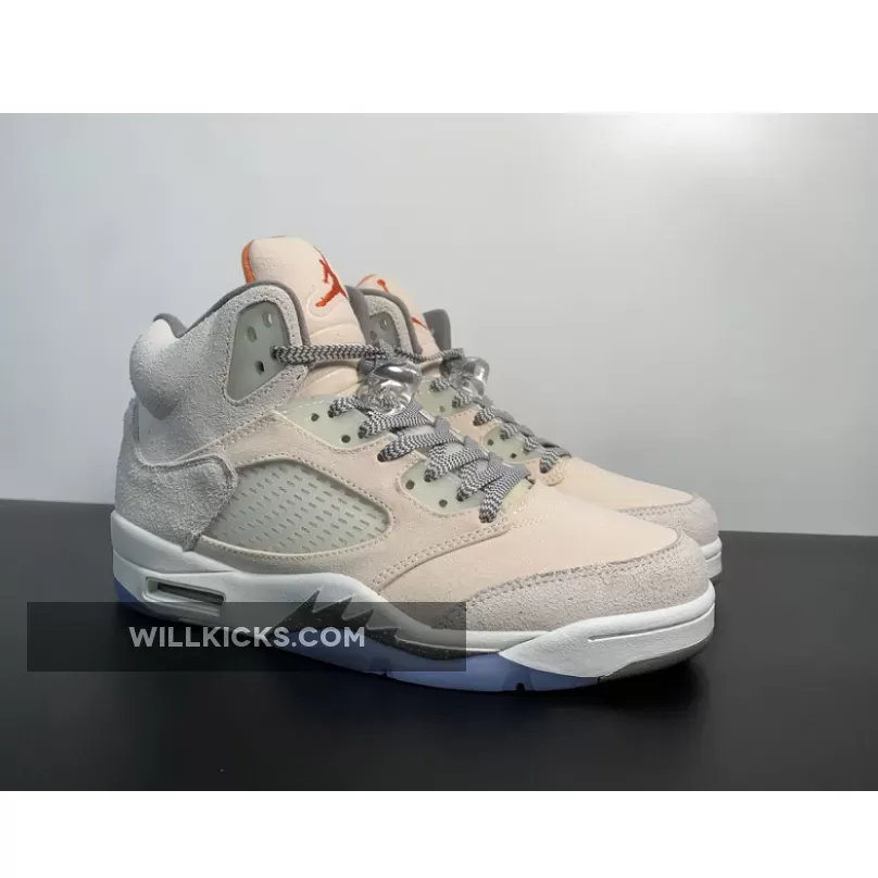 Fan of retro shoes? Don’t miss the Air Jordan 5 Craft Light Orewood Brown. This eye-catching sneaker features a lovely pale grey leather upper with breathable beige side panels and peach eyestays. Elsewhere, the plush tongue is dressed in metallic silver which highlights its red-orange Jumpman logo. Further down, hits of red-orange and light apricot decorate the lower portion of the shoe. Finally, it rounds off with grippy herringbone outsoles with flex grooves.