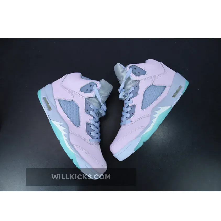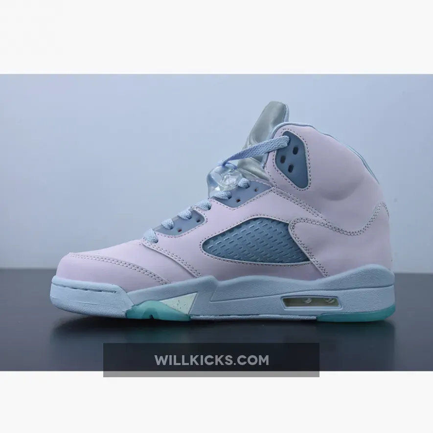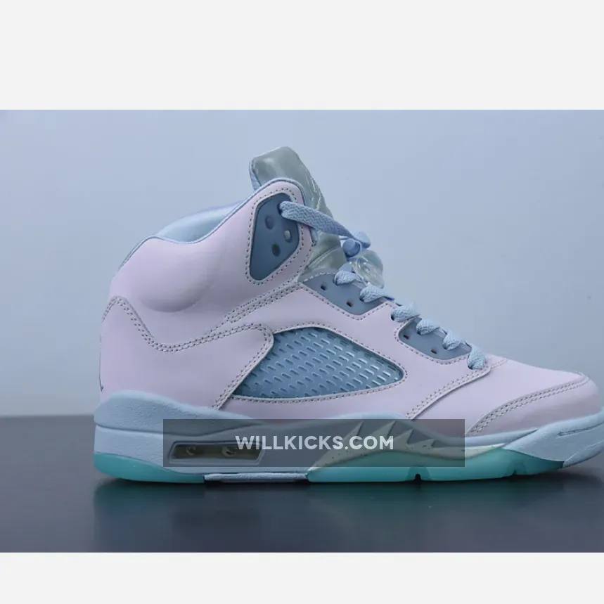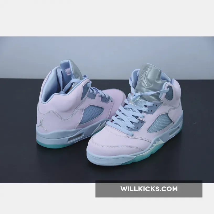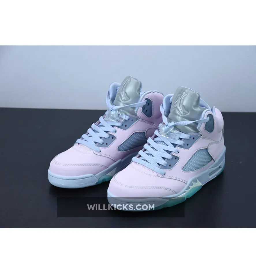 Embodying the bright and playful vibe of spring, the Air Jordan 5 Easter boasts a dainty colourway that will surely charm you. Smooth pastel pink leather dominates as it fills out almost the entire upper, from the toe box to the heel.