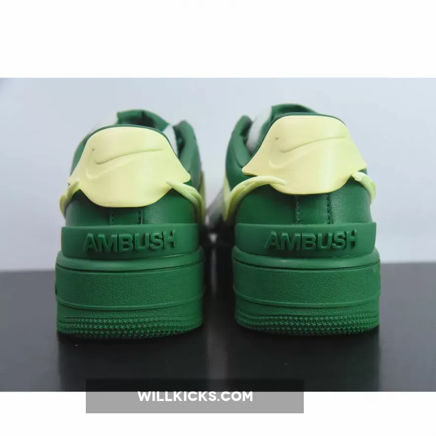 Quality leather and a bold design make these Air Force 1 Lows from AMBUSH and Nike a must-have for collectors. The exaggerated Swoosh and vibrant green hue are eye-catching, while the attention to detail is evident in the premium materials and meticulous construction.