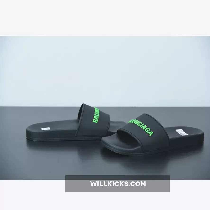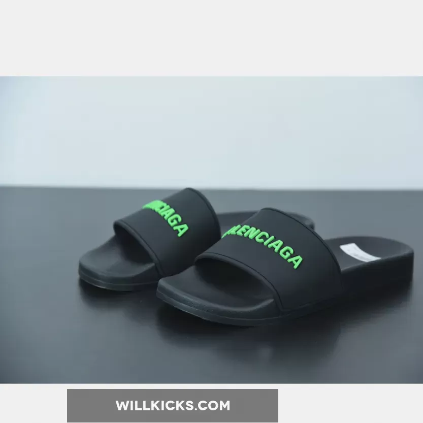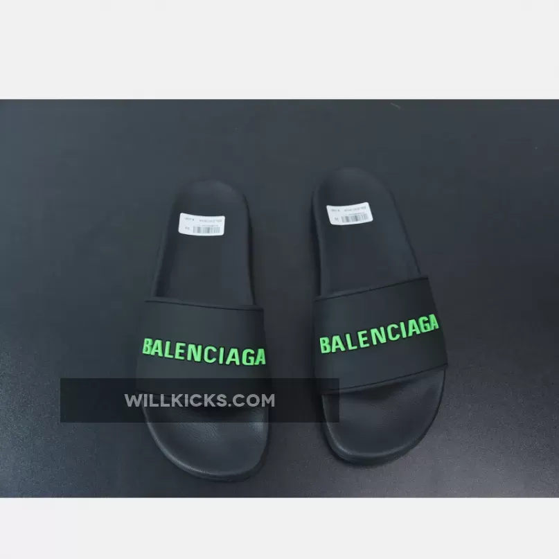 Shop Top Brands and the latest styles Balenciaga Logo Pool Sides Sandals Black Green 1675867639 Discount from across the worldwide at www.willkicks.com.