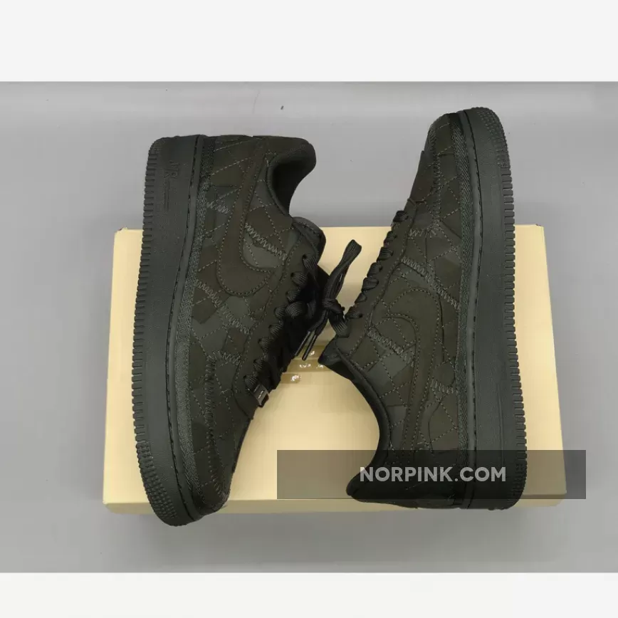 This Nike Air Force 1 Low has a quilted upper made with “Sequoia” suede, a dark fabric with a tinted green hue. The sneaker has a patchwork exterior complete with canvas and statement stitching. The shoe also features sustainable details as its made from recycled and vegan textiles.