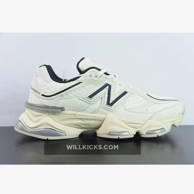 Step into the future of New Balance sneakers in this fresh colourway. Get ready for the progressive design of this New Balance 9060 “Turtledove Black”.The NB 9060 is considered part of the popular New Balance 99X series, where the shoe based its design. New Balance senior footwear designer James Lee and 2002R “Refined Future” designer Yue Wu teamed up to create this Y2K-inspired sneaker. This modern retro 9060 follows up on the success of the 327, which was an ode to the 70s. Chunky midsoles, signature upper fabrics, and a more streamlined shape helped the New Balance 9060 quickly gain attention in the market. This colourway features a sail white leather upper and a mesh base with honeycomb patterns underneath. Black accents adorn the N logo on the lateral panel and the interior lining. The heel counter and rubber portions on the midsole come in grey. The decoupled outsole with diamond traction pods completes the futuristic design of this lifestyle shoe.