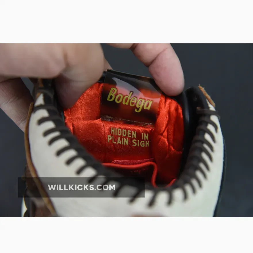 The unique design of the Bodega x Nike Dunk High ‘Legend’ taps into notions of Americana, old-world craftsmanship and the collective spirt of a like-minded team. The Boston-based retailer brings together those influences through detailing that recalls a baseball mitt, highlighted by moccasin-like rawhide stitching on the midfoot, heel and collar. The rest of the upper features a cream-hued leather toe box, brown hairy suede quarter panels and overlays in smooth suede and pebbled leather. A tortoise shell jewel Swoosh adorns the lateral side, while the opposite side features a debossed Bodega logo.
