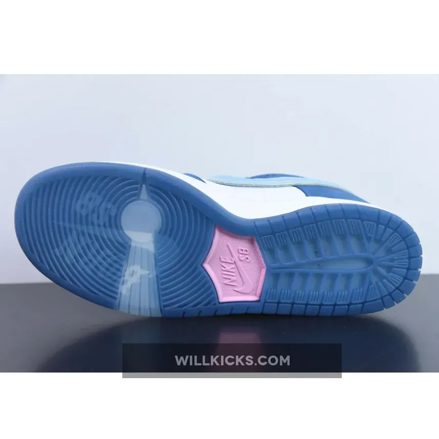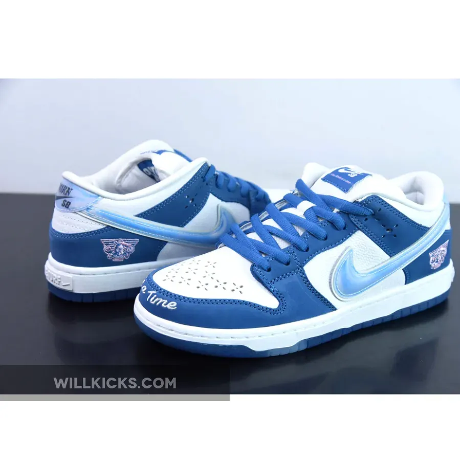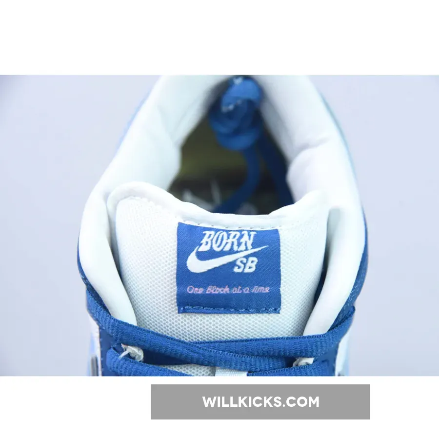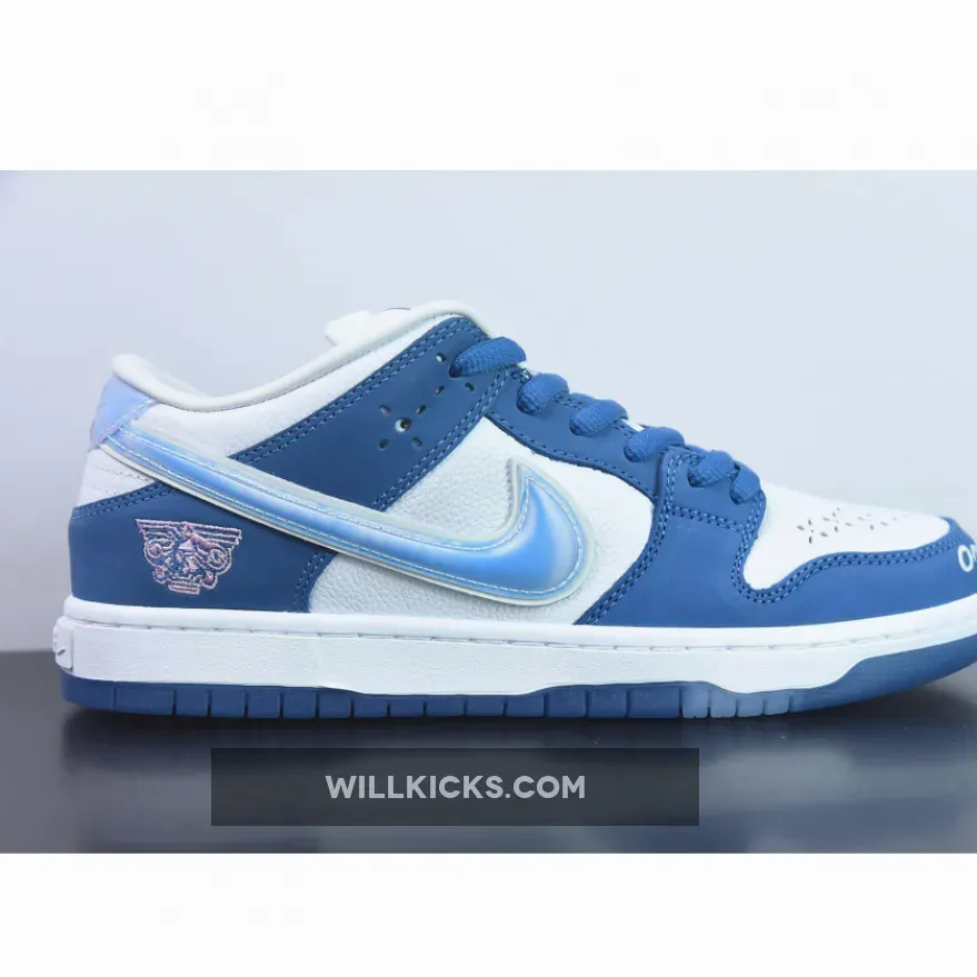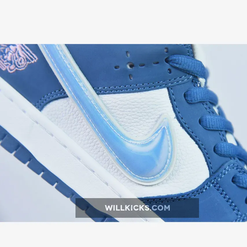 The LA-based streetwear label upgrades the classic SB model with a crisp white and blue color scheme.This offering of the Born x Raised x Nike SB Dunk Low features a White premium leather upper and lining with Blue nubuck overlays, mesh tongues atop a White midsole and Blue rubber outsole.. Highlighting the shoes, we have Born x Raised’s motto, ‘One Block At A Time,’ embroidered on the forefoot and placed on the tongue labels. Next, “In Loving Memory” is heat pressed onto the laces with branded lace tips, 3D text on the midsole’s heel with co-branded tongue labels, heels, insole, and outsole completes the design. Co-branding lands on the tongue labels, heels, insoles, and outsole, while holographic Swooshes and heel tabs finish the look