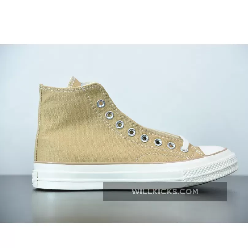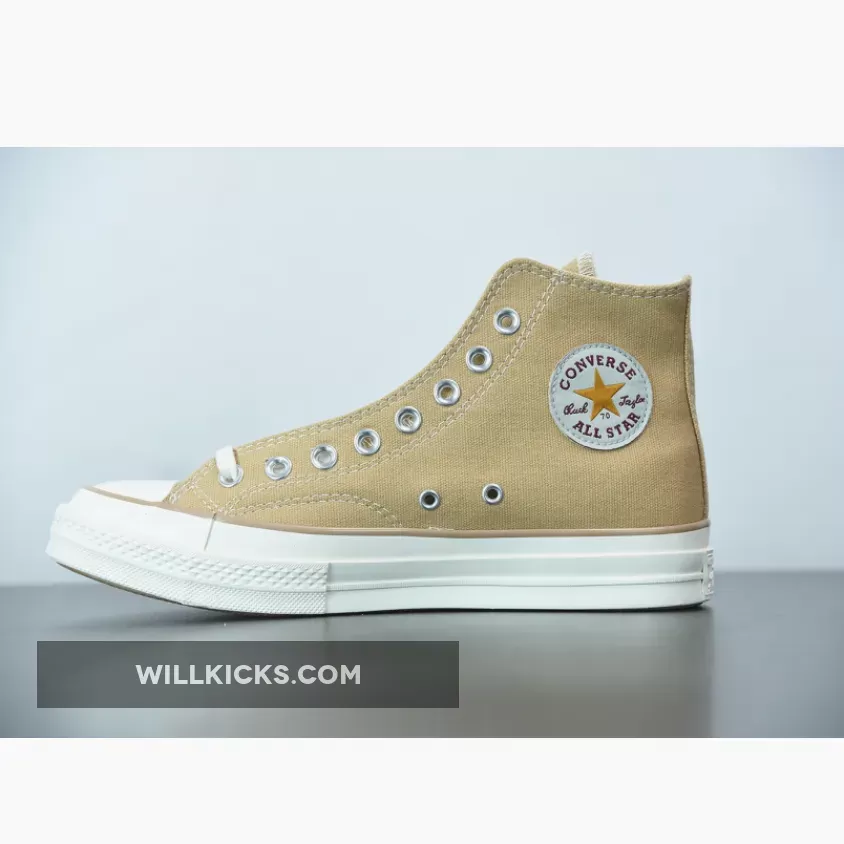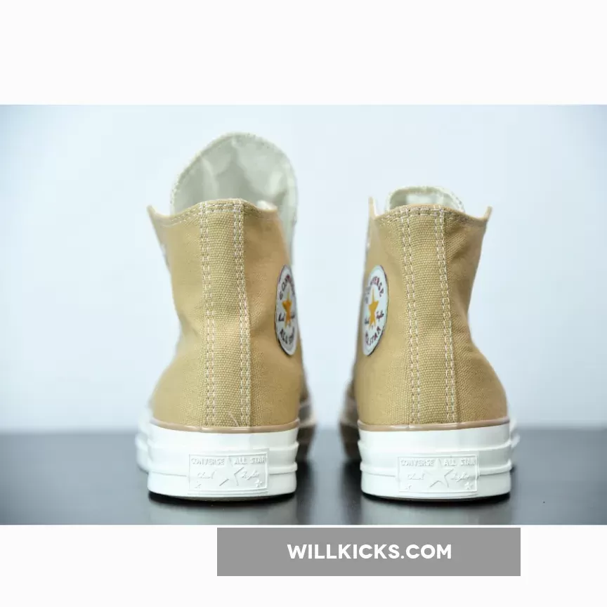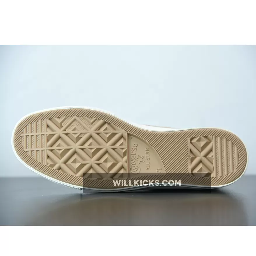 Are you surprised by the simplicity of this colour scheme? This Carhartt WIP Converse partnership dons a chic palette of Hamilton Brown almost monochromatically. The brown shade paints the entire canvas walls, including the tongue tab. As a result, a creamy hue of white paints the laces, Vulc toe-cap, and the iconic Converse Chuck 70 midsole. The metallic silver hoops jump out with more sass from the base. The dual branding takes their respective places. For example, the classic CT 70 circular branding patch takes the sidewall collar, and Carhartt’s logo comes on the tongue label. This team-up of the two brand mixes workwear with streetwear and ensures maximum comfort and performance.