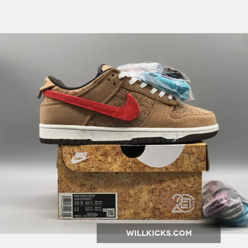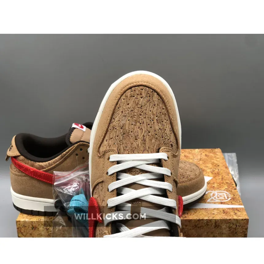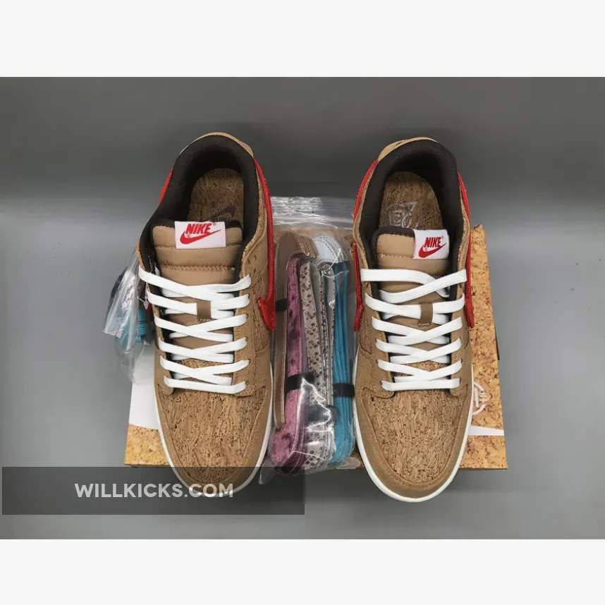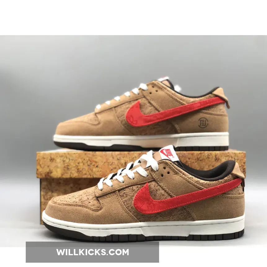 2023 is a historic year for CLOT as it marks the label’s 20th year. Founders Edison Chen and Kevin Poon created this lifestyle brand to converge Eastern and Western cultures through various collaborations. After joining forces with Nike for the first time in 2006 for the Nike Air Max 1 “Kiss of Death”, more collaborative designs soon followed in the next 17 years. To celebrate CLOT’s milestone, the brand teamed up with Nike and kicked things off with a trio of modified Nike Cortez “CLOTEZ” with removable upper layers to resemble slip-on kung fu shoes. This “Cork” Dunk Low marks the third collaboration this 2023.