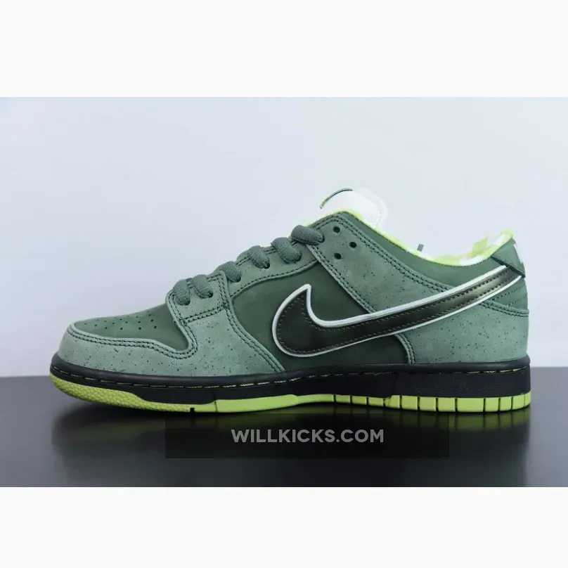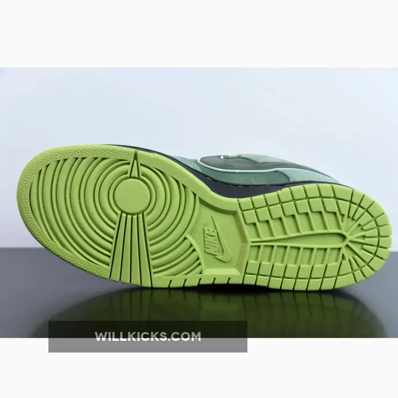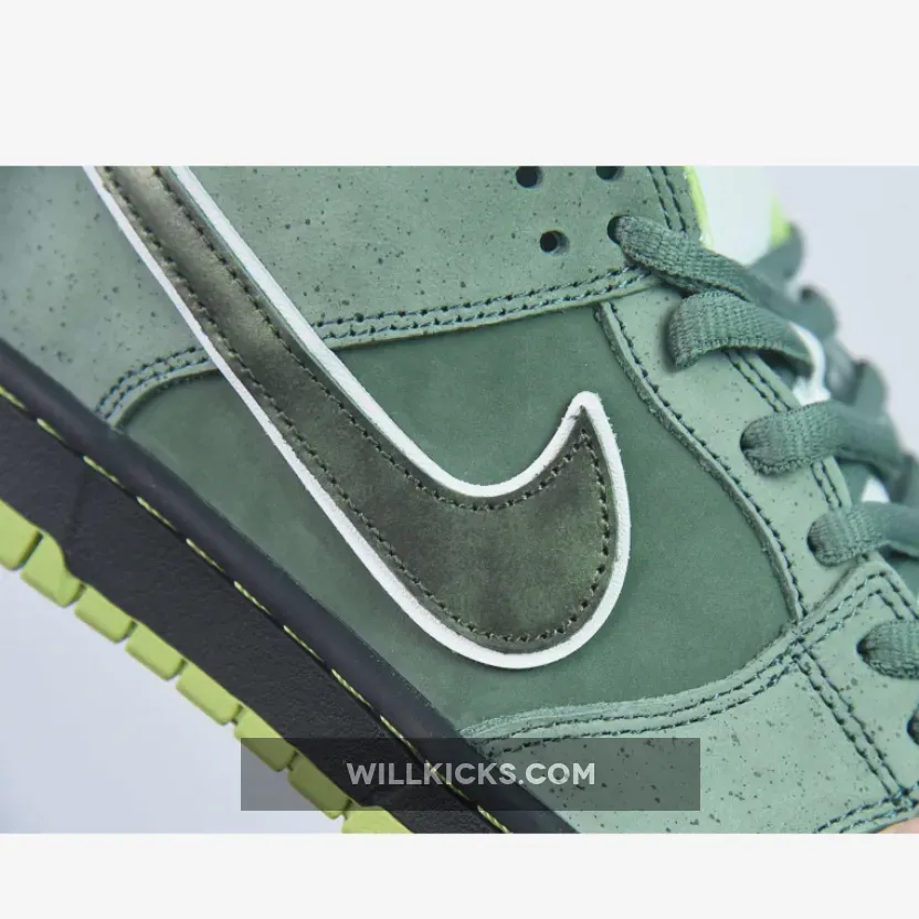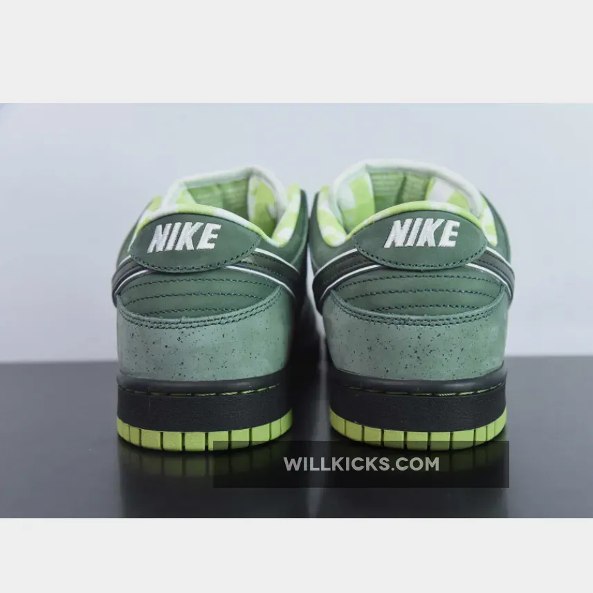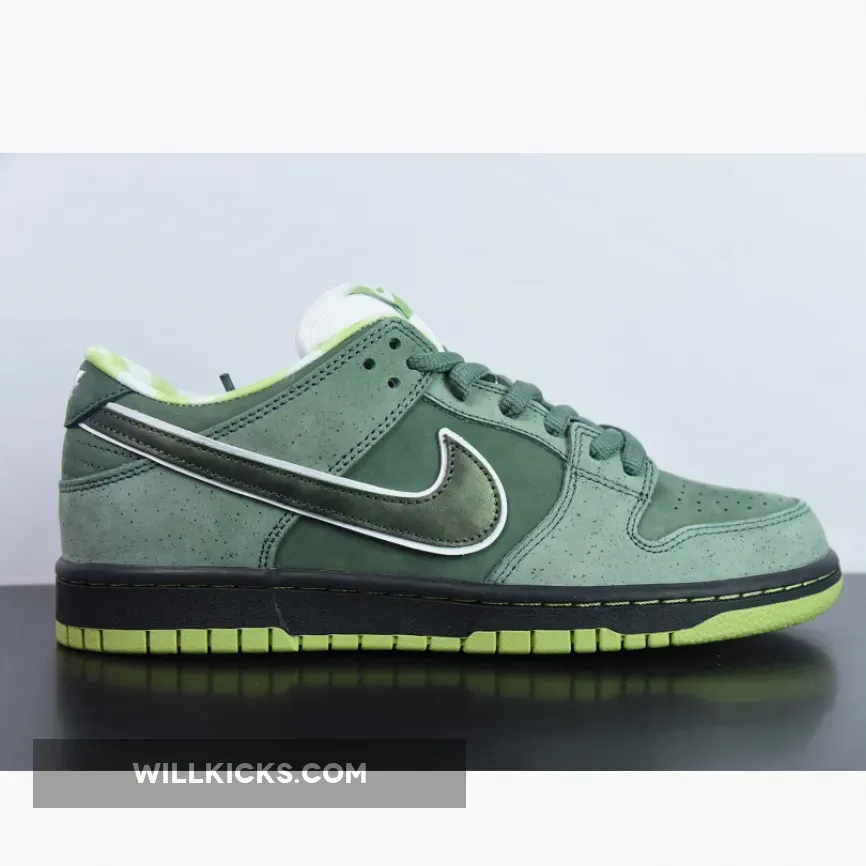 Casting another big shadow of Concept and color, the Nike Dunk Low Pro SB Green Lobster followed up its vivid purple cousin with subtlety and exclusivity. The green stone upper opted for minimal speckling, allowing the shock of neon green on the sole and inner pattern to pop. A Black midsole and Green rubber outsole completes the design.