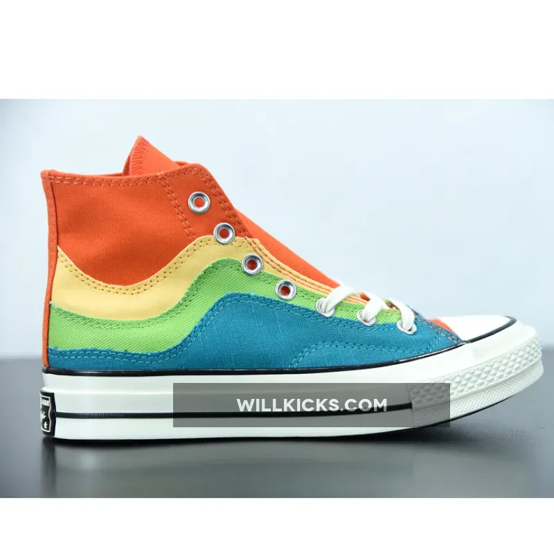 “I’m thoroughly impressed with my Converse Chuck 70 High ‘The Great Outdoors Multi’. The layered, multicolored design is a stunner! I love how the peach-ripped canvas adds texture and the lime twill gives it a pop of brightness. The recycled laces are a thoughtful touch. Comfortable and durable, this shoe’s unique vibe makes me feel like I’m making a statement. 5/5 stars!”