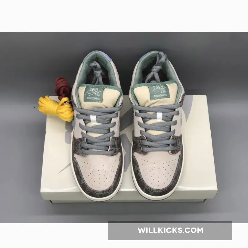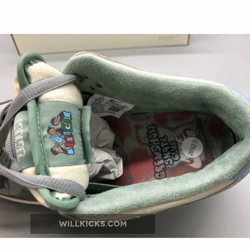we can see the upcoming Crenshaw Skate Club x Nike SB Dunk Low boasts a clean design made from smooth suede and leather overlays featuring Purple/Seafoam print.