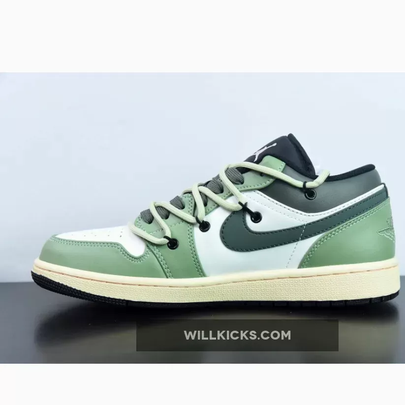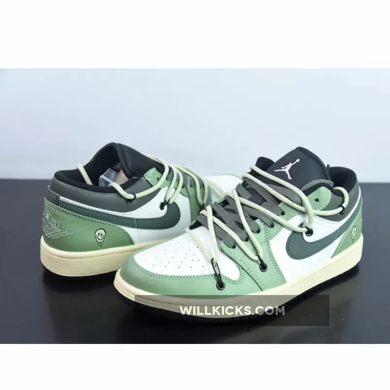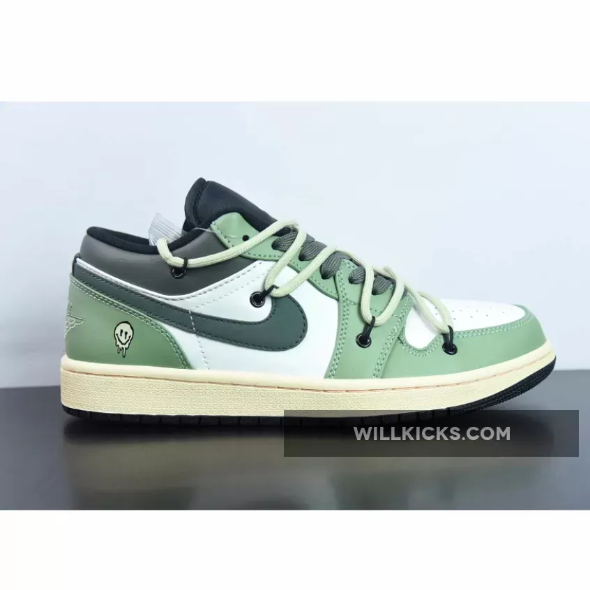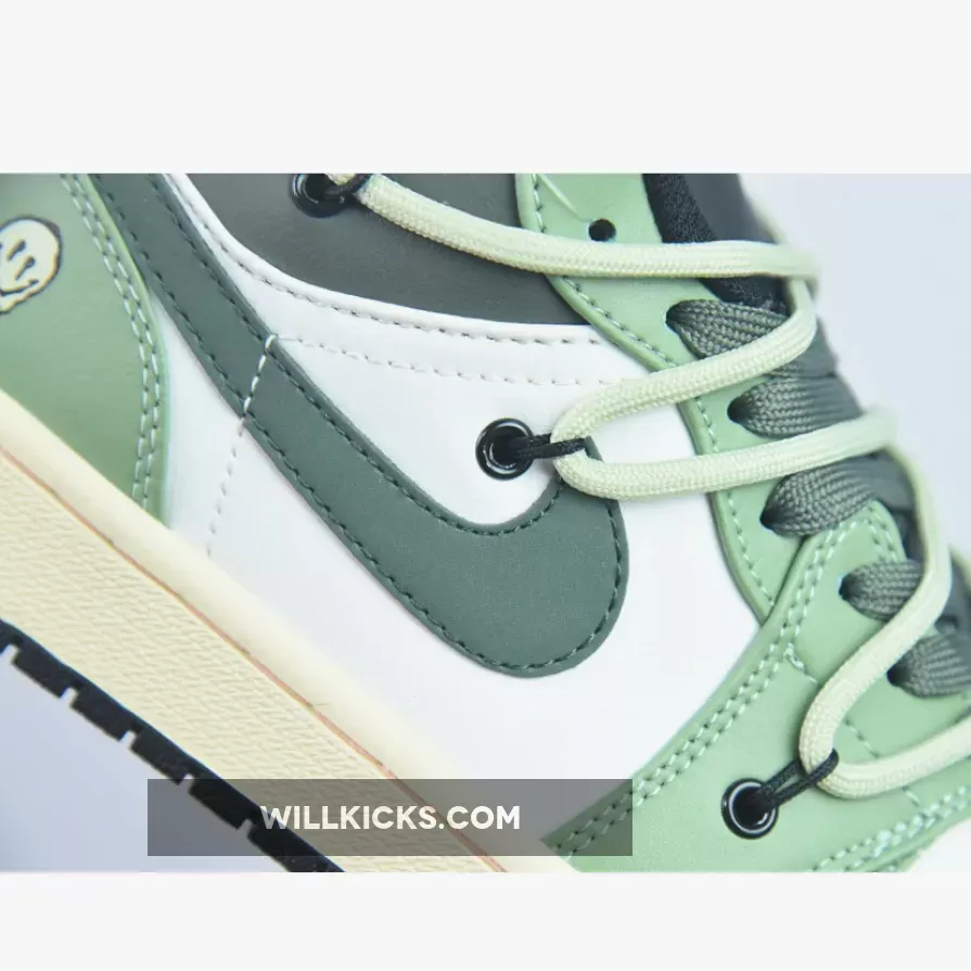 Unleash your style with Custom Air Jordan 1 Low White Black Green from WILLKICKS.COM.