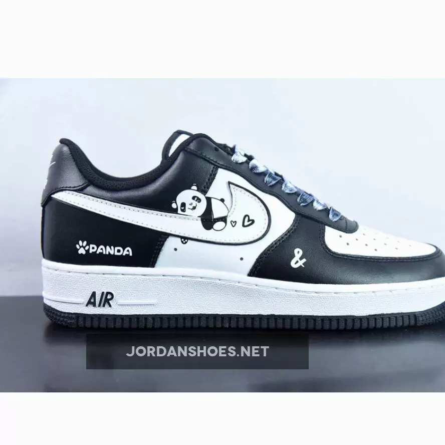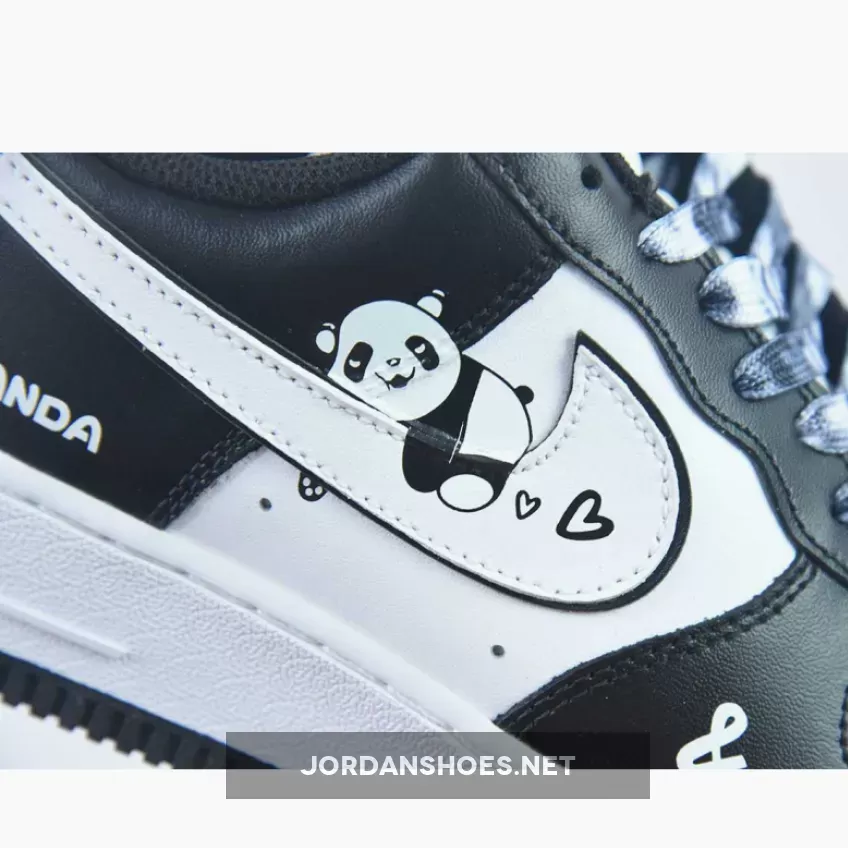 this Air Force 1’s palette is comprised entirely of neutral colors. Echoing the two-toned look of its Peter Moore-designed counterpart, the pair dresses its overlays in black and its unders in a bright white. a panda on the logo and panda lettering on the heel. Save for the Swoosh, which flips what’s expected of the animal-inspired scheme, the adjacent fixtures are similarly reminiscent of the alluded Dunk Low.