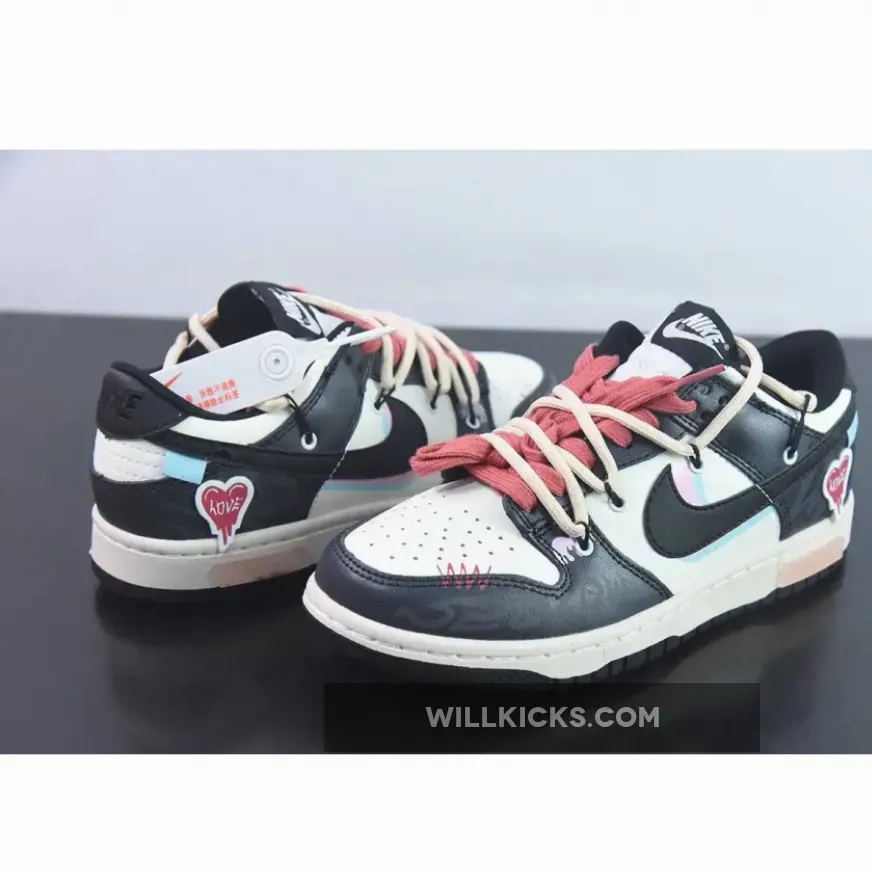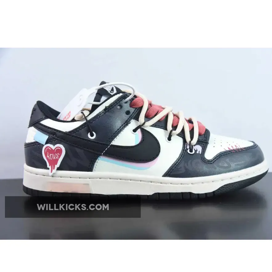 Custom Nike Dunk Low ‘Love’ Black White – redefine your style with WILLKICKS.COM.