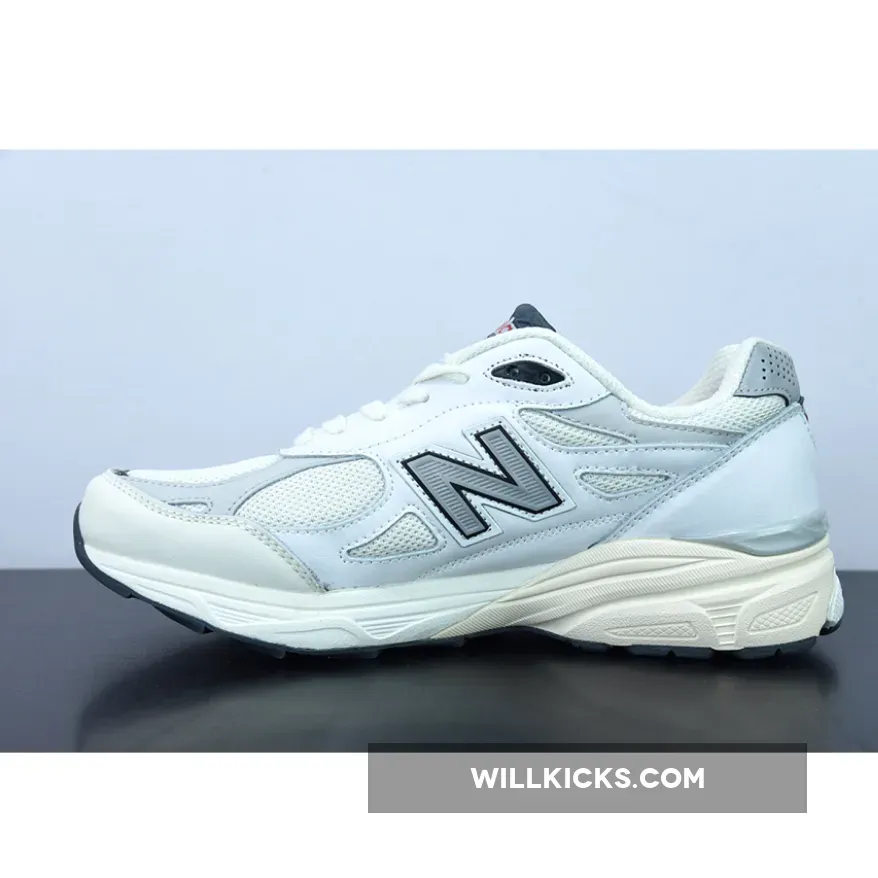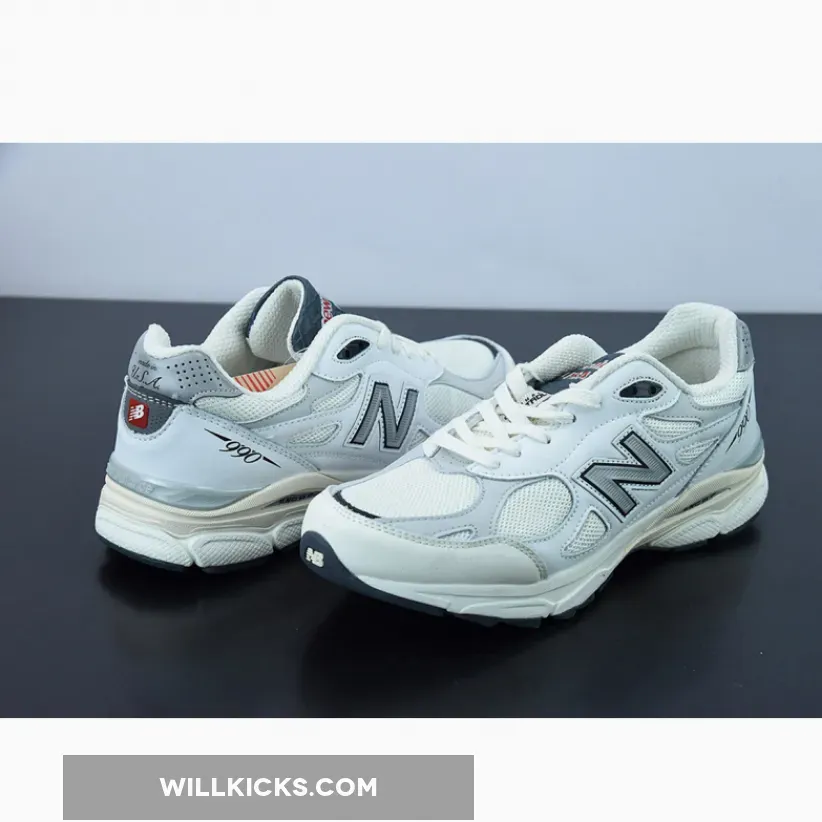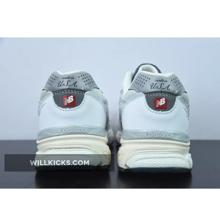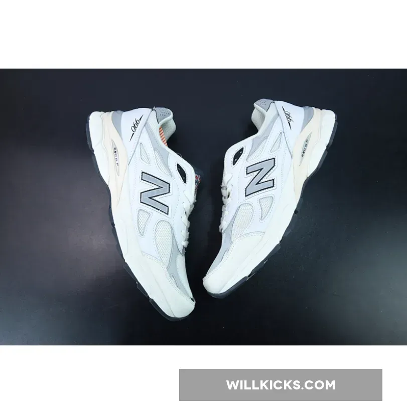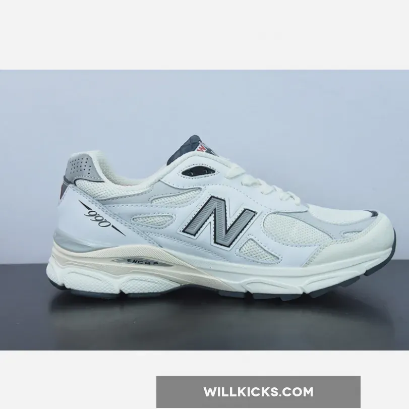 “The New Balance 990v3 Made in USA ‘Sea Salt’ represents one of the first releases marking Teddy Santis’ tenure as Creative Director of the Boston brand’s Made in the USA line. The lifestyle runner sports a white mesh upper with tonal leather overlays and a silver ‘N’ logo on the quarter panel. Contrasting crimson accents land on an NB badge on the back heel and ‘New Balance USA’ branding on the tongue. Lightweight cushioning arrives via a two-tone ENCAP midsole, featuring a soft EVA core surrounded by a tough polyurethane rim.Get your feet comfortable while exuding refined style with the New Balance 990v3 Made in USA Sea Salt. This low-top lifestyle pair features a luxurious construction that’s signature to New Balance’s 99X series including the well-loved 990v3. It showcases a white breathable mesh base that’s overlaid with white and grey leather accents. Adding to its mainly monochromatic look is the black plush tongue embellished with New Balance 990 branding. This fashionable sneaker finishes with a yellowed ENCAP midsole and a lightweight black outsole. Perfect for sneaker newbies and long-time enthusiasts alike.