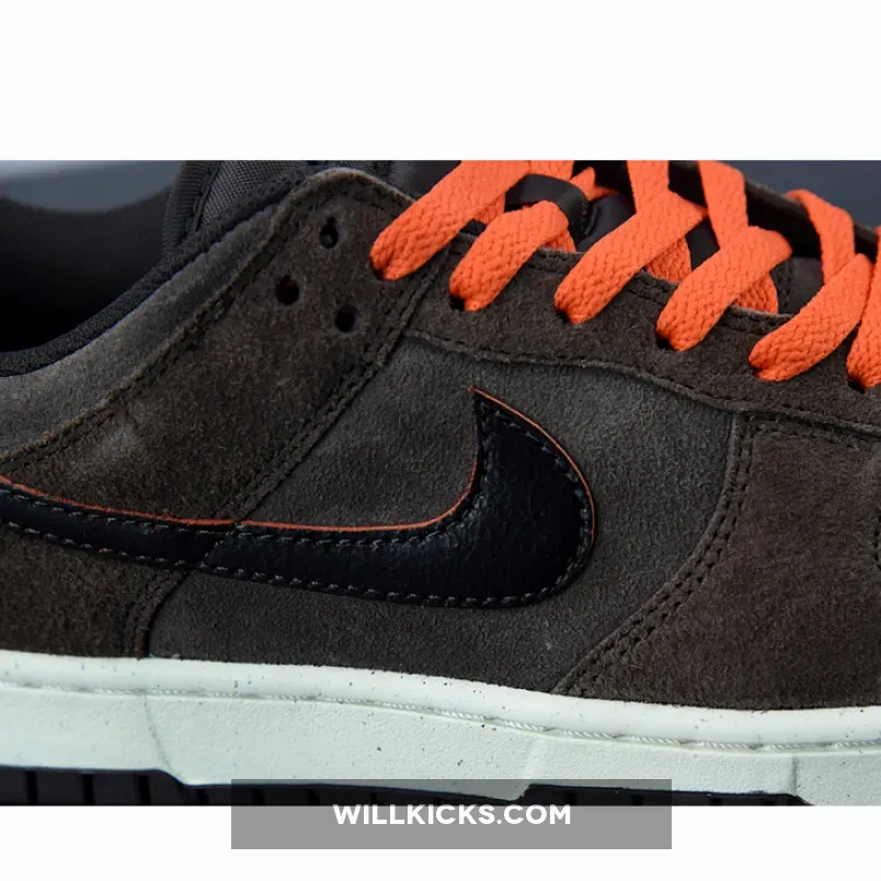 Arriving with a classic low-top profile, a blend of smooth and rough suede panelling constructs the upper in a Baroque Brown colourway. Interrupting the tonal look are Nike Swoosh logos across the side and branded heel tabs made up of cracked leather in black. Orange shoelaces further add contrast to the design.
