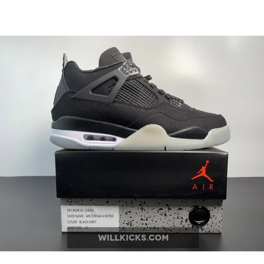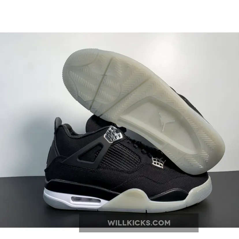 This Air Jordan 4 is dressed in a Black, Chrome, and White color scheme. Carhartt’s rugged canvas on the upper has these looking tough-as-nails. Restrained hits of silver adorn the Jumpman and lace loops.