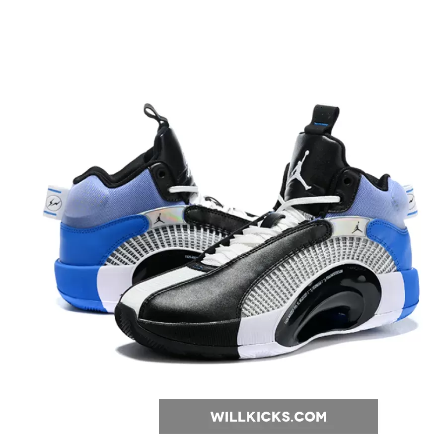 The Fragment x Jordan 35 Black White Blue is one of several brand-new models set to release as part of Hiroshi Fujiwara’s latest Fragment Design collaboration with Jordan Brand. The duo have teamed up previously with the previous Fragment x Air Jordan pack being one of the most hyped releases in the history of sneakers. The brand-new Jordan 35 is the model of choice here, releasing alongside the Jordan 3 and the Jordan Cadence as the other silhouettes in this collaborative pack. The futuristic Fragment Design x Air Jordan 35 is crafted from a whole range of fabrics including leather, technical mesh and supple suede. Leather overlays in black and blue complement plenty of branding, including stitching at the heel tab, the brand’s signature lightning bolt logos, Jumpman branding and other Jordan x Fragment bold logos. Alongside sneakers, this collaborative capsule also feature a full apparel collection including nylon tracksuits, nylon pants, hoodies and T-shirts.