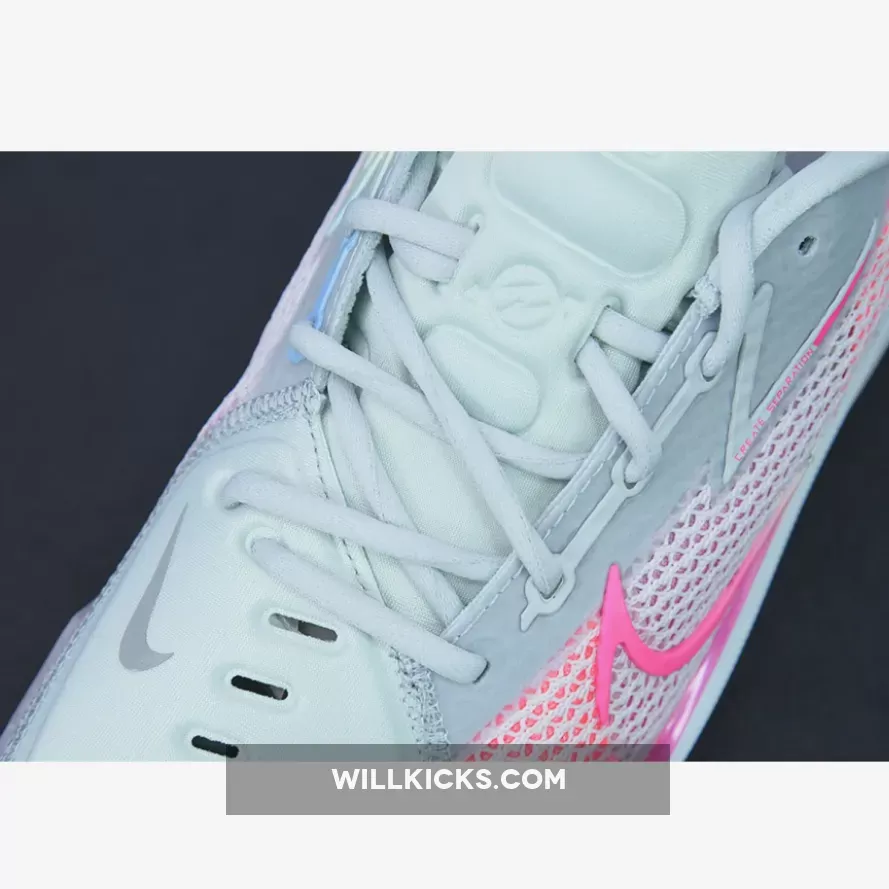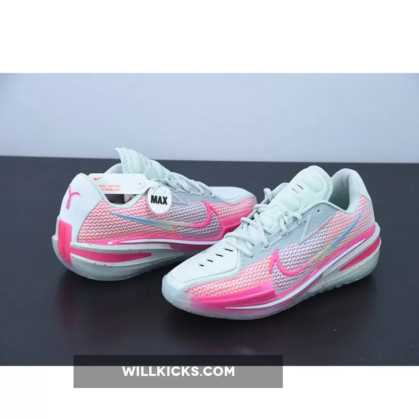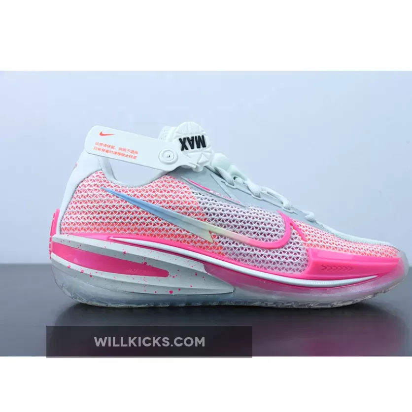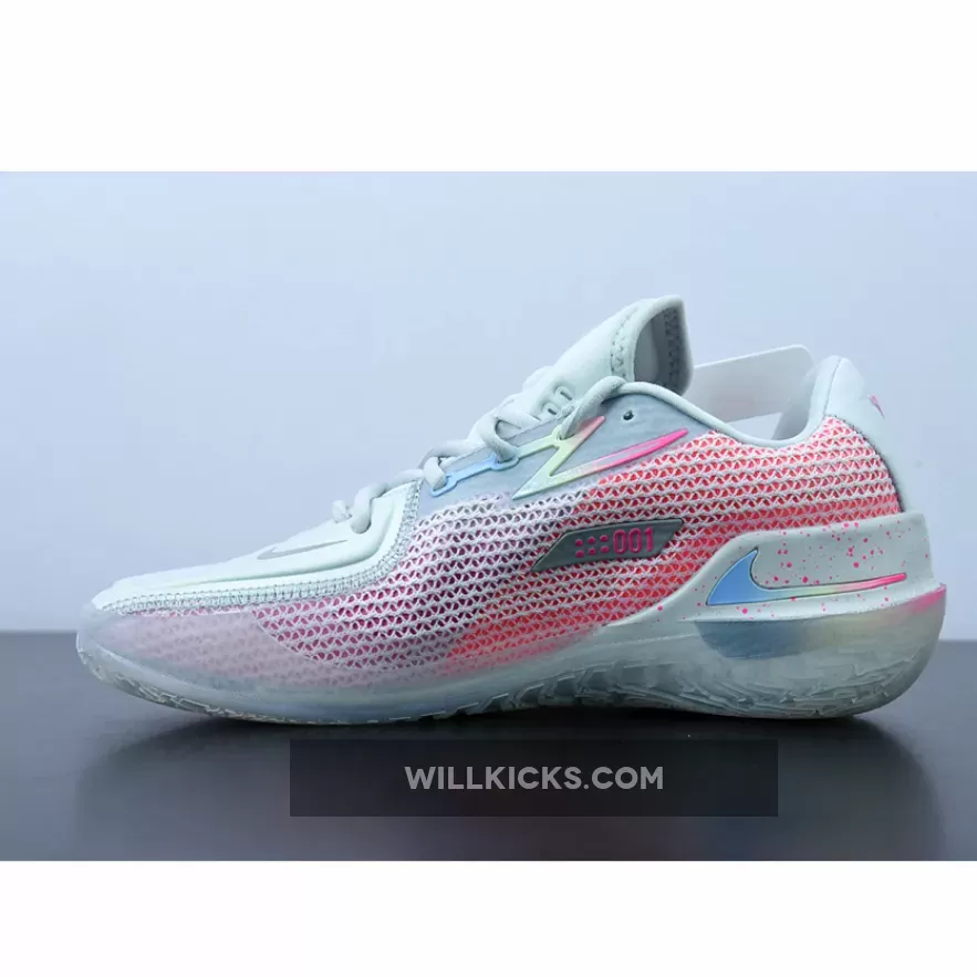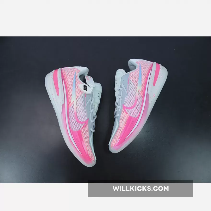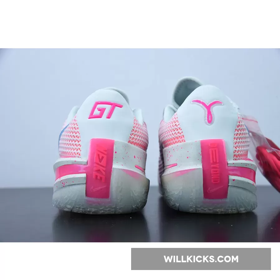 This new colorway of the current-gen Nike Zoom GT Cut is colored in white and pink, with the Swoosh on the lateral and medial sporting a soft pastel gradient of pink, yellow, and soft purple. The Kay Yow logo proudly appears on the right heel of the shoes, while speckle patterns cover the entirety of the midsole.