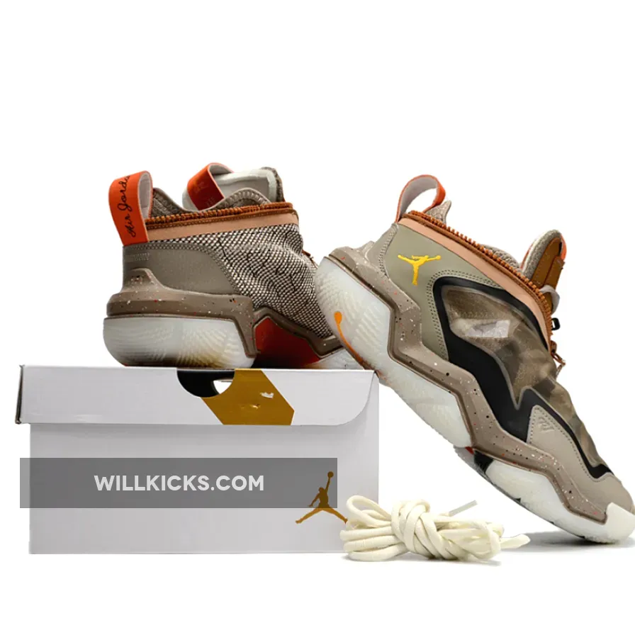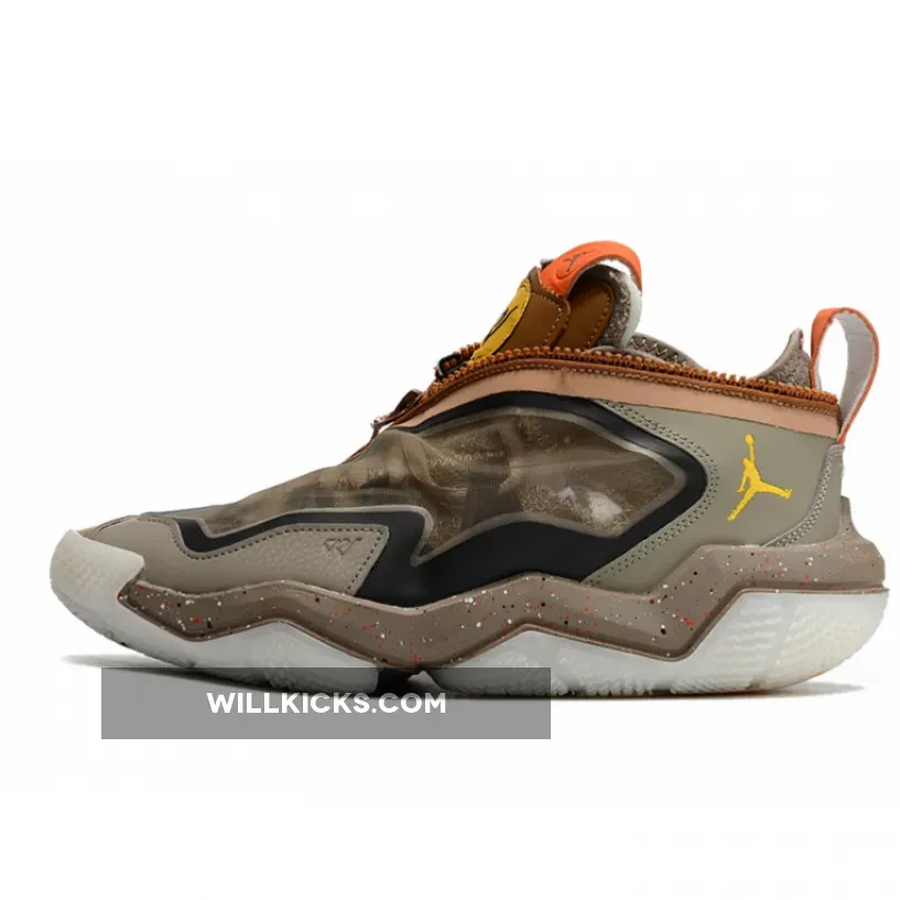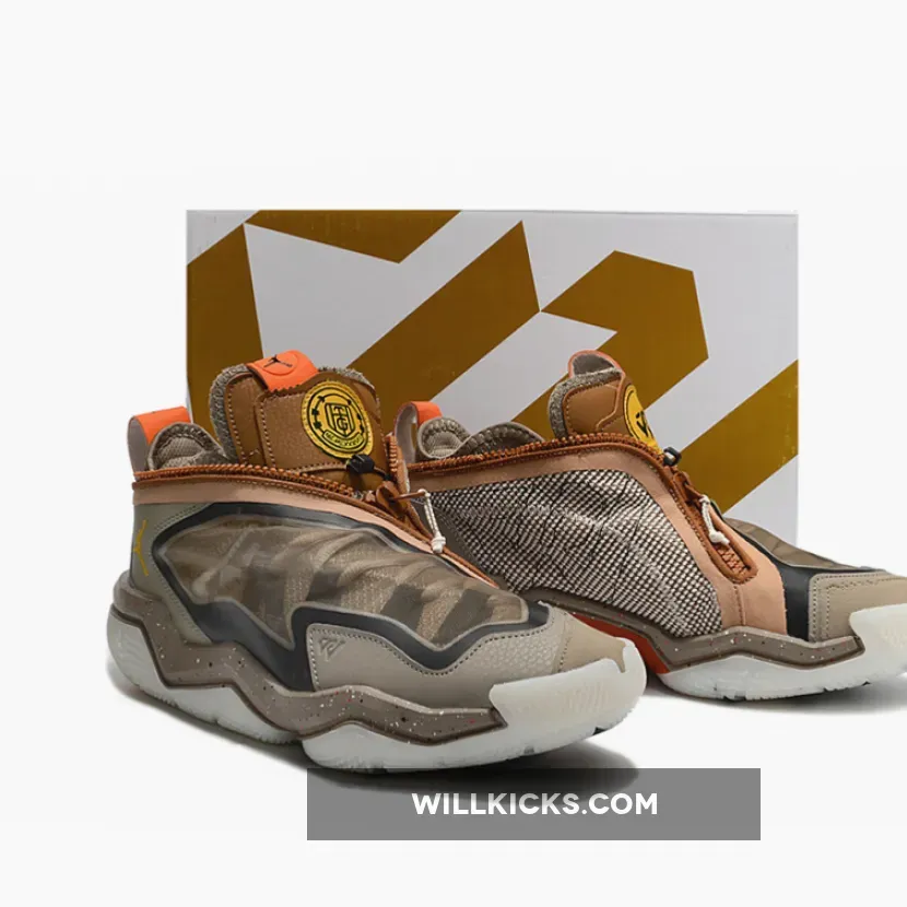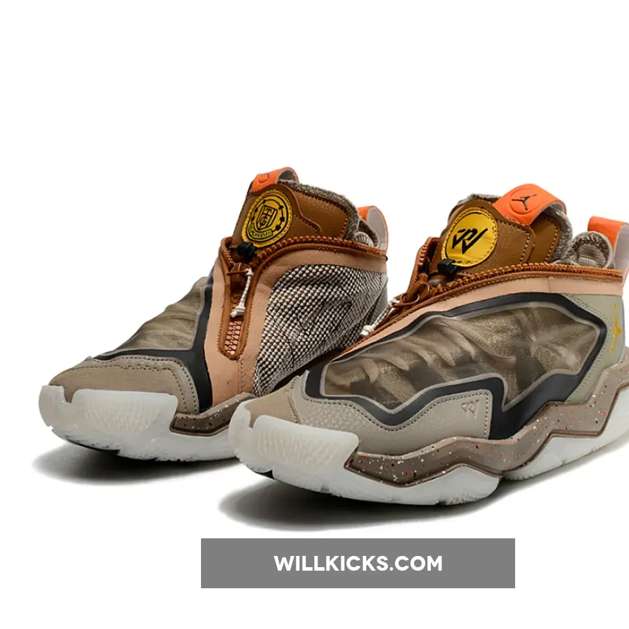 This Jordan Why Not .6 comes dressed in a Pecan, Yellow Ochre, Phantom, Campfire Orange, Moon Fossil, and Black color combination. throughout its mesh, leather, and suede construction. Further elevating this low-top offering is a signature semi-translucent zipper shroud, varsity-inspired branding on the tongues, and a patchwork design emblazoned on the insoles.