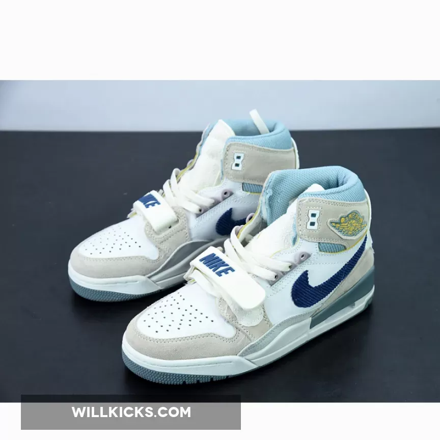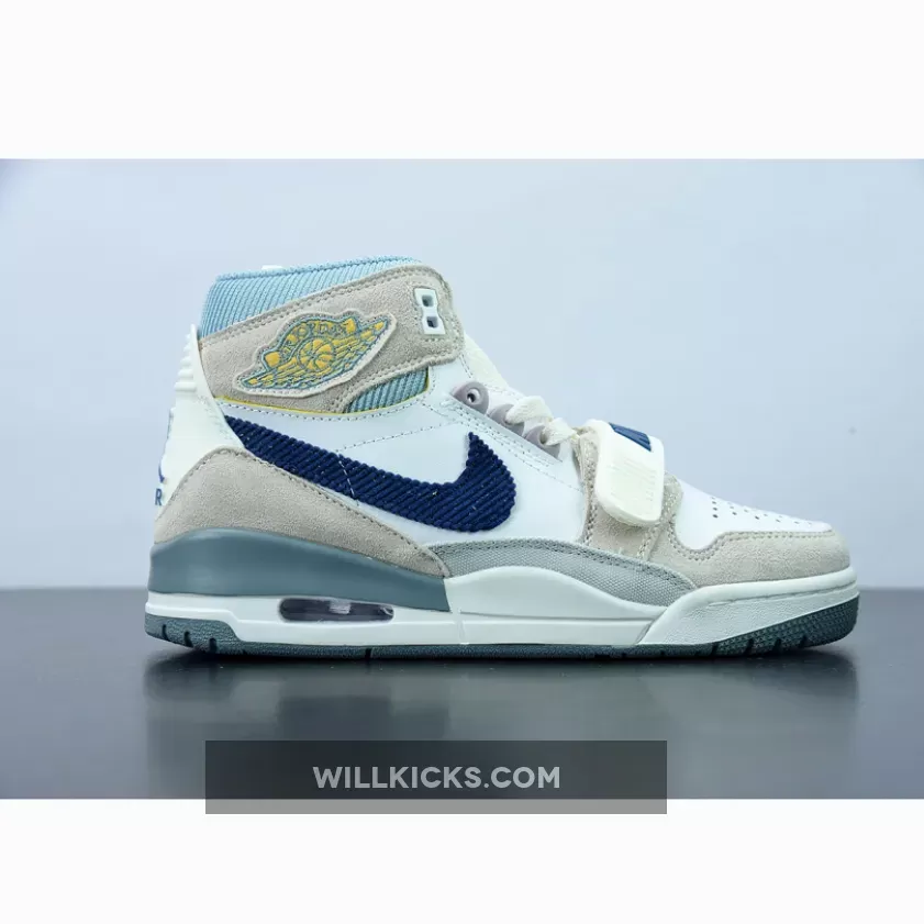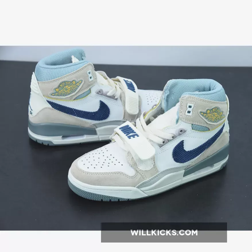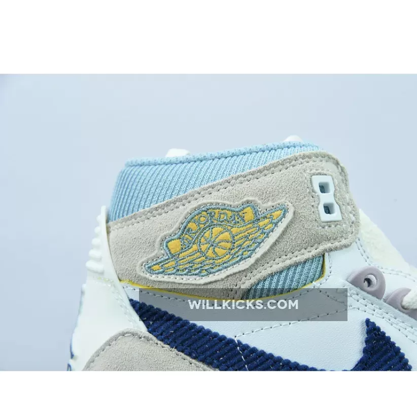 The bright white leather base is but only a small factor here, with a bevy of material overlays coming in to cover the release, From warm beige suedes at the toe, heel, and ankle flaps, to grey canvas mudguards and blue corduroy checks, the pair is a bonafide smorgasbord of textile. But wait — there’s more. Crochet-like tongues, fleece Wings motifs, and ribbed collars complete the material makeup in hues of cream, gold, and steel blue respectively. Plastics at the eyestays and forefoot strap usher in light mauves and creams, whilst branding at the vamp and heel come colored in blue.