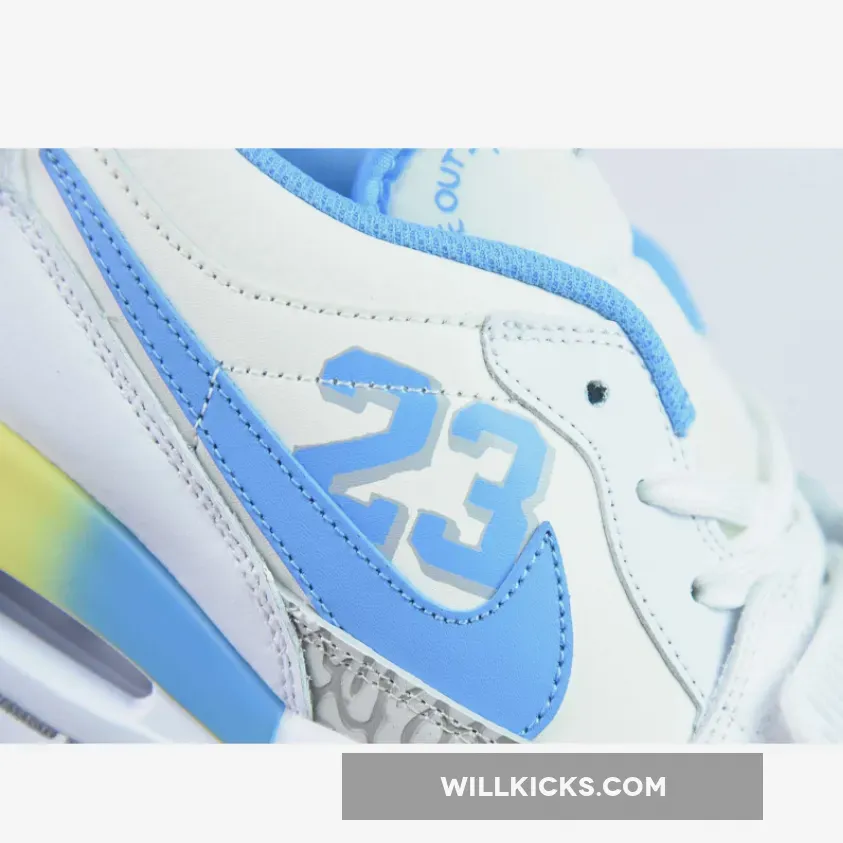 Paying homage to the state of North Carolina, MJ’s “23” jersey number is proudly displayed right atop the signature profile Swooshes on both the medial and lateral panels in University Blue. Additional hits of the UNC signature are also applied along the Swoosh, lining, branding, and the blue-to-yellow gradient along the midsole.