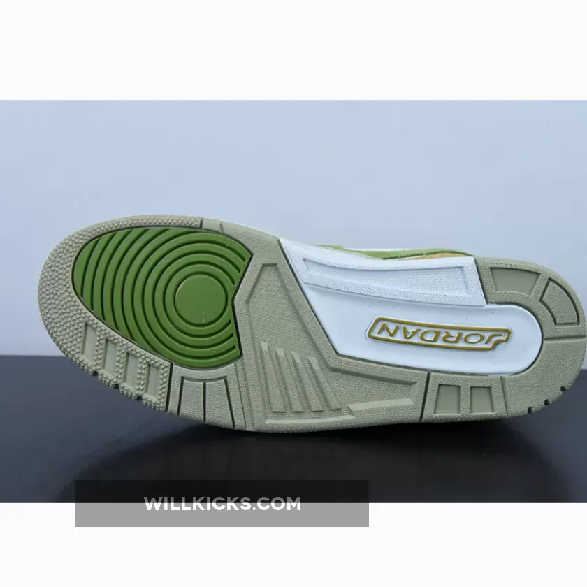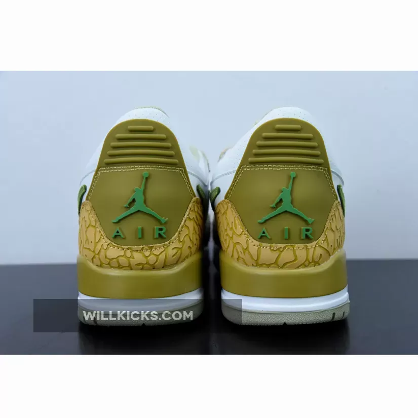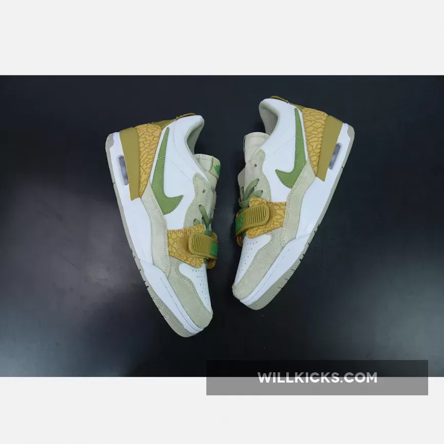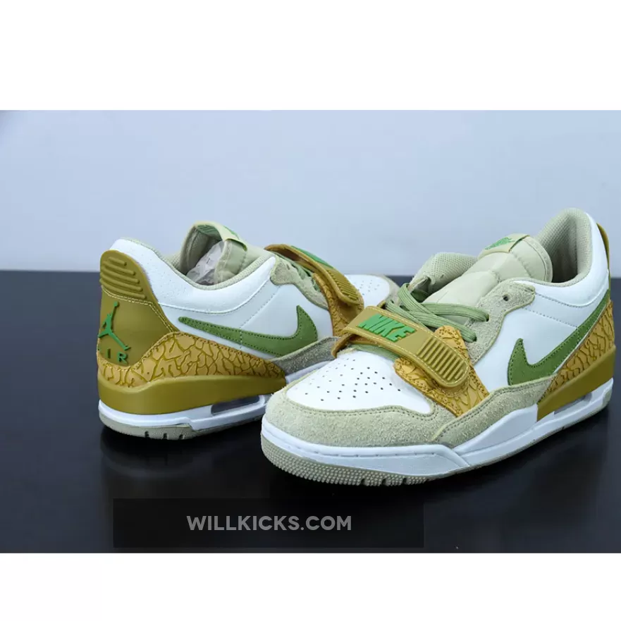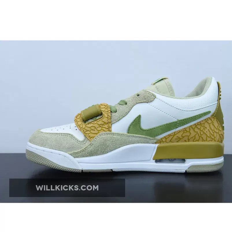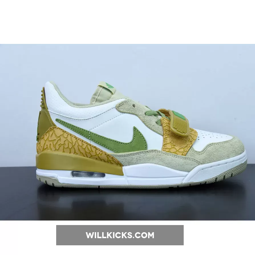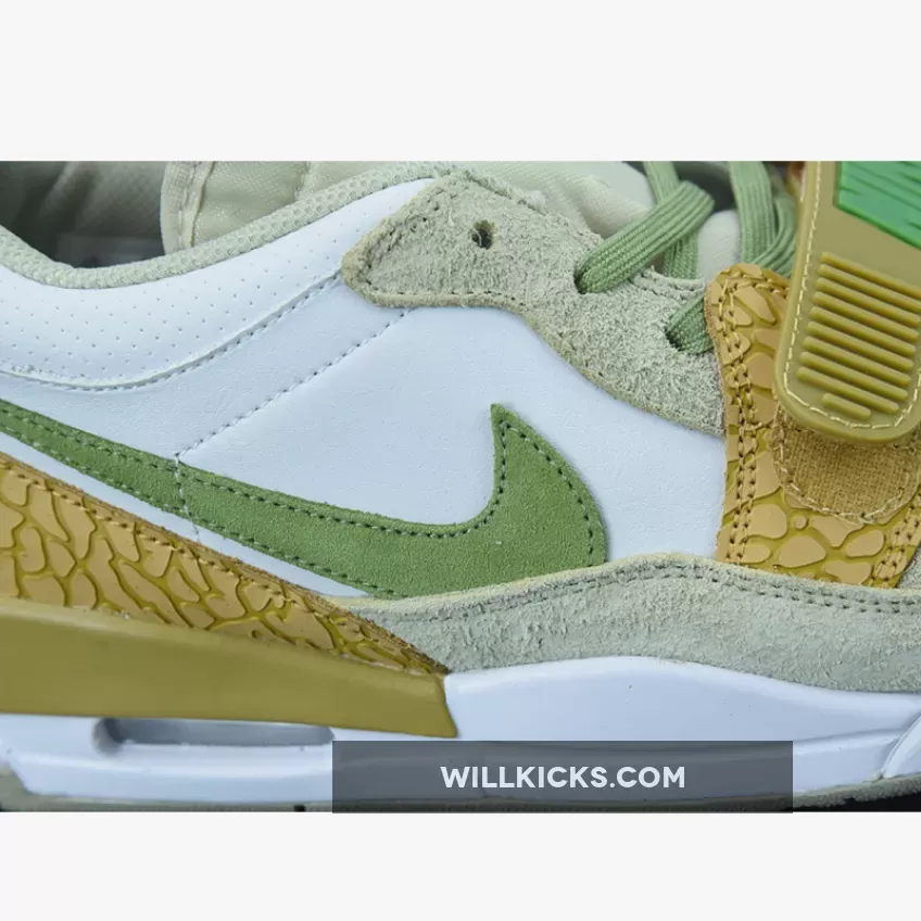 The four-year-old Jordan Legacy 312 joins the “Bayou Boys” collection of the Jordan Brand in honour of Zion Williamson of the New Orleans Pelicans. The colour scheme of this low-cut Legacy 312 is definitely inspired by the New Orleans landscape with swampy looking green on the laces, the fuzzy-looking signature profile Swooshes on both sides of the shoe, the Wings logo on the tan-coloured nylon tongue and the Jumpman on the insoles. The base is a plain smooth white leather to emphasise all the other eye-catching details of the shoe like the hairy suede tan overlays. The mudguard and the heel counter, on the other hand, are tan and golden yellow with an elephant print pattern. The olive green TPU Velcro flaps have bright green Nike branding, matching the look of the heel panel with the bright green Jumpman. A white midsole with an exposed Air unit at the heel and a tan rubber outsole round out the design of this sneaker. Bag the Jordan Legacy 312 Low Bayou Boys on Our Store Supplier app and always be ready to know about the latest introductions from the release calendar of the Jordan Brand and Nike.