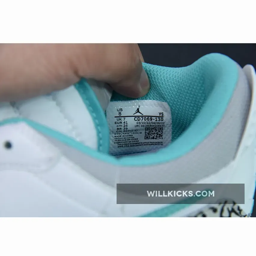 This offering of the low-top Jordan Legacy 312 comes constructed in a mix of leather and mesh with signature nylon tongues. It features a White base highlighted with Turquoise contrasting accents and classic elephant print overlays in the rear.