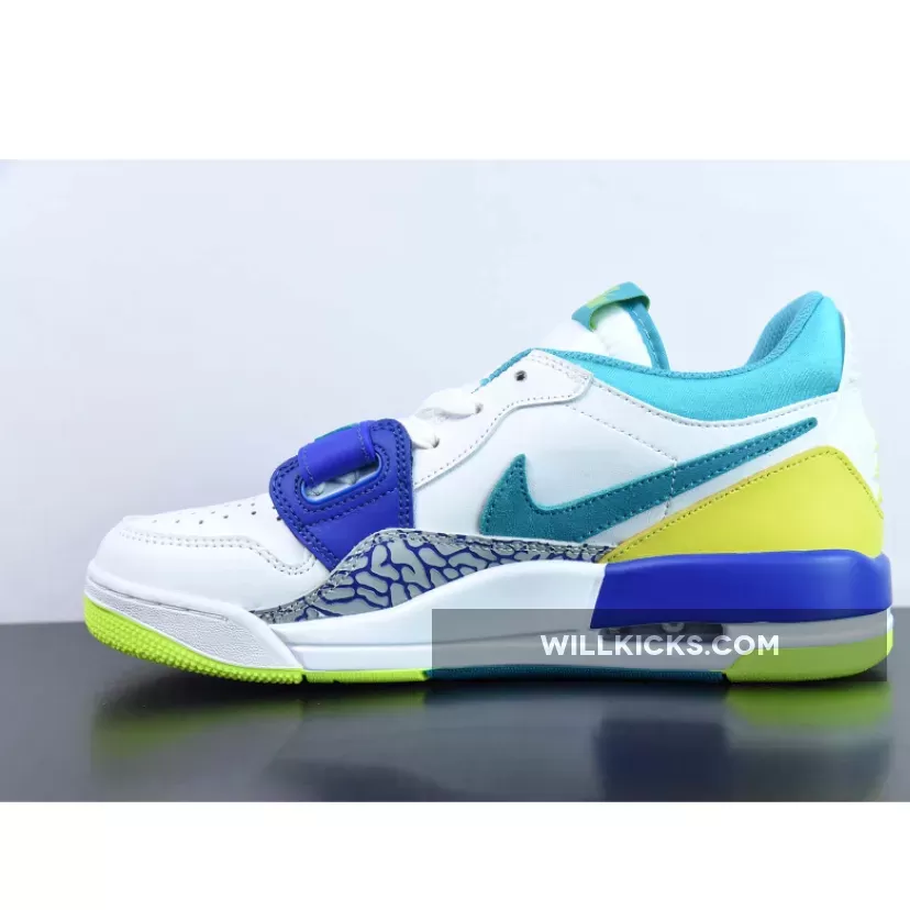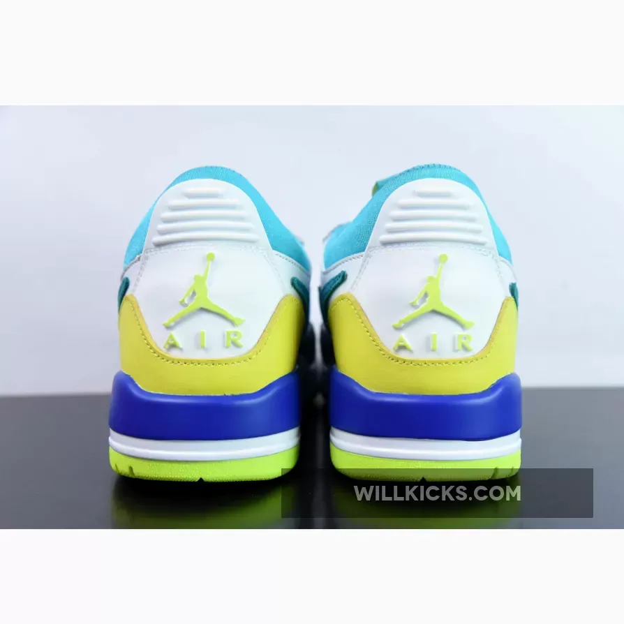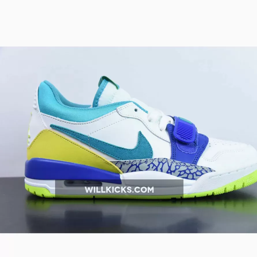 “I’m loving my new Air Jordan Legacy 312 Low! The white and teal combo is so fresh 🔥. The Just Don branding adds a nice touch 👍. The purple and volt accents give it some extra pop 💃. Overall, the design is fire 🔥. Only minor gripe is the fit is a tad snug, but I’m not complaining 😊. 4.5/5 stars ⭐️⭐️⭐️⭐️”