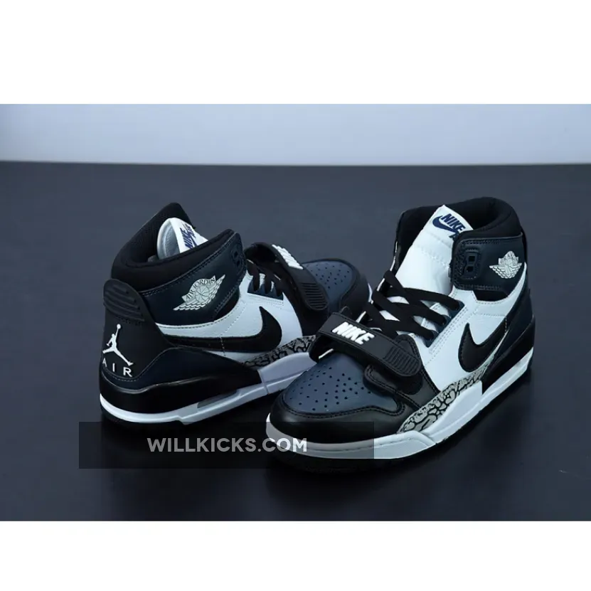 The Jordan Legacy 312 combines key parts and features from some of your favorite Air Jordan models. This new colorway starts off with a leather construction done in a White, Black, and Navy color scheme. Notable details include the elephant print overlays on the forefoot, White Wings branding on the ankle, Jumpman branding on the insoles and heels, “NIKE” branding on the midfoot strap and Nike Air branding on the tongue tags.