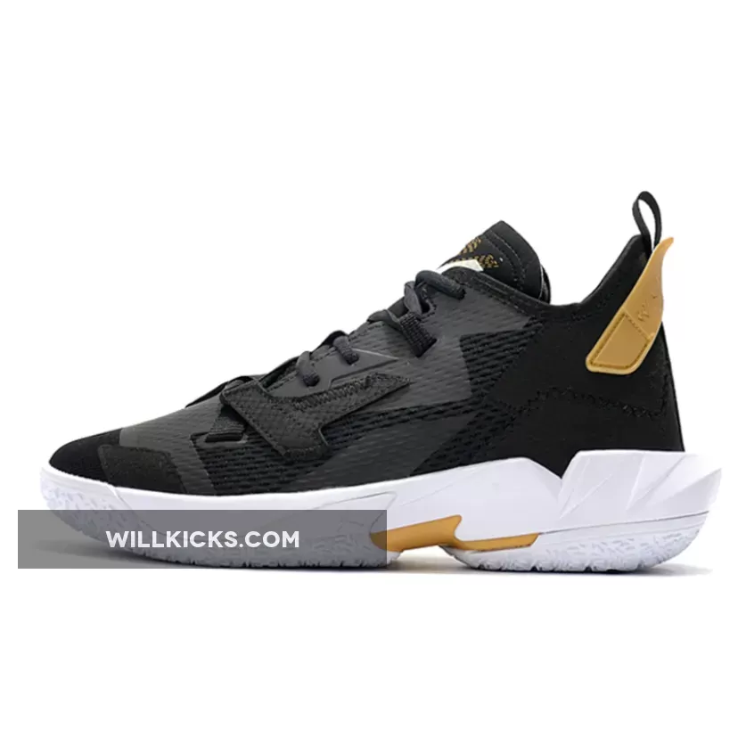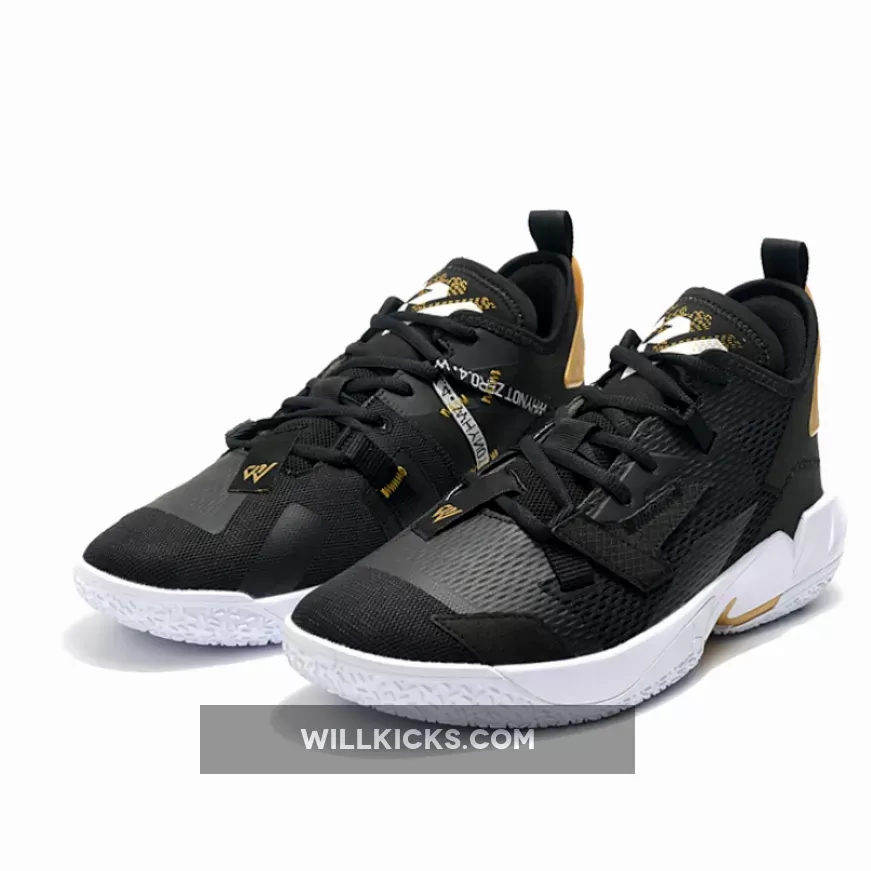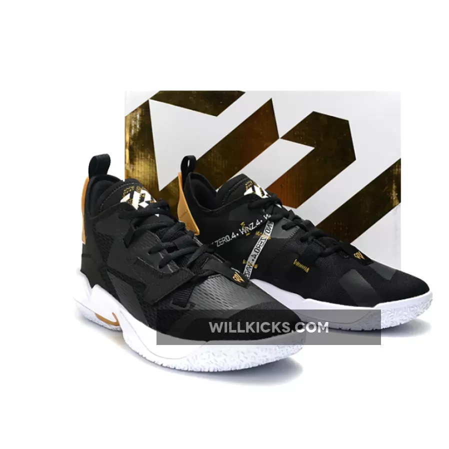 Dressed in a Black, White, and Metallic Gold color scheme. It comes built in different combination of materials on the upper providing a lightweight and breathable construction. The new Why Not Zer0. The nods to his family are spotted on the sockliners with his loved ones’ initials.