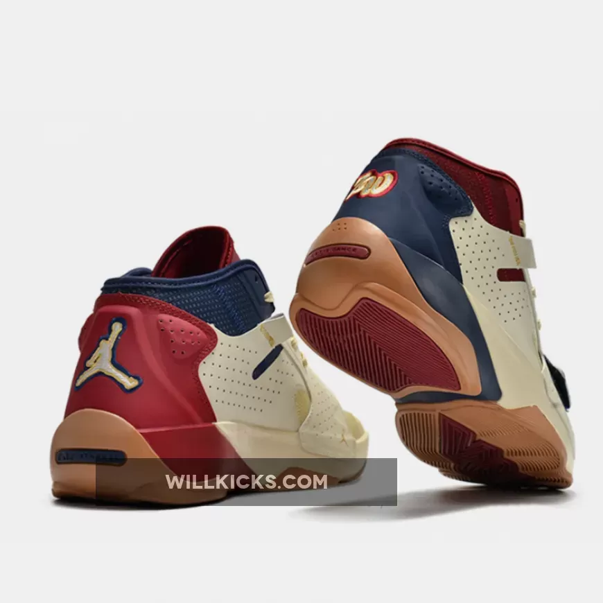 The Jordan Zion 2, named after New Orleans Pelicans’ power forward, Zion Lateef Williamson, has an attractive new iteration in the Pelicans’ team colours. Presenting the Jordan Zion 2 Pelicans. This Zion 2 has a mesh base in Coconut Milk and all-white leather overlays. On the other hand, Navy blue takes over on the right heel and the right nylon tongue and inner bootie. Zion’s emblems are seen on the tongues, insoles and right heel.
